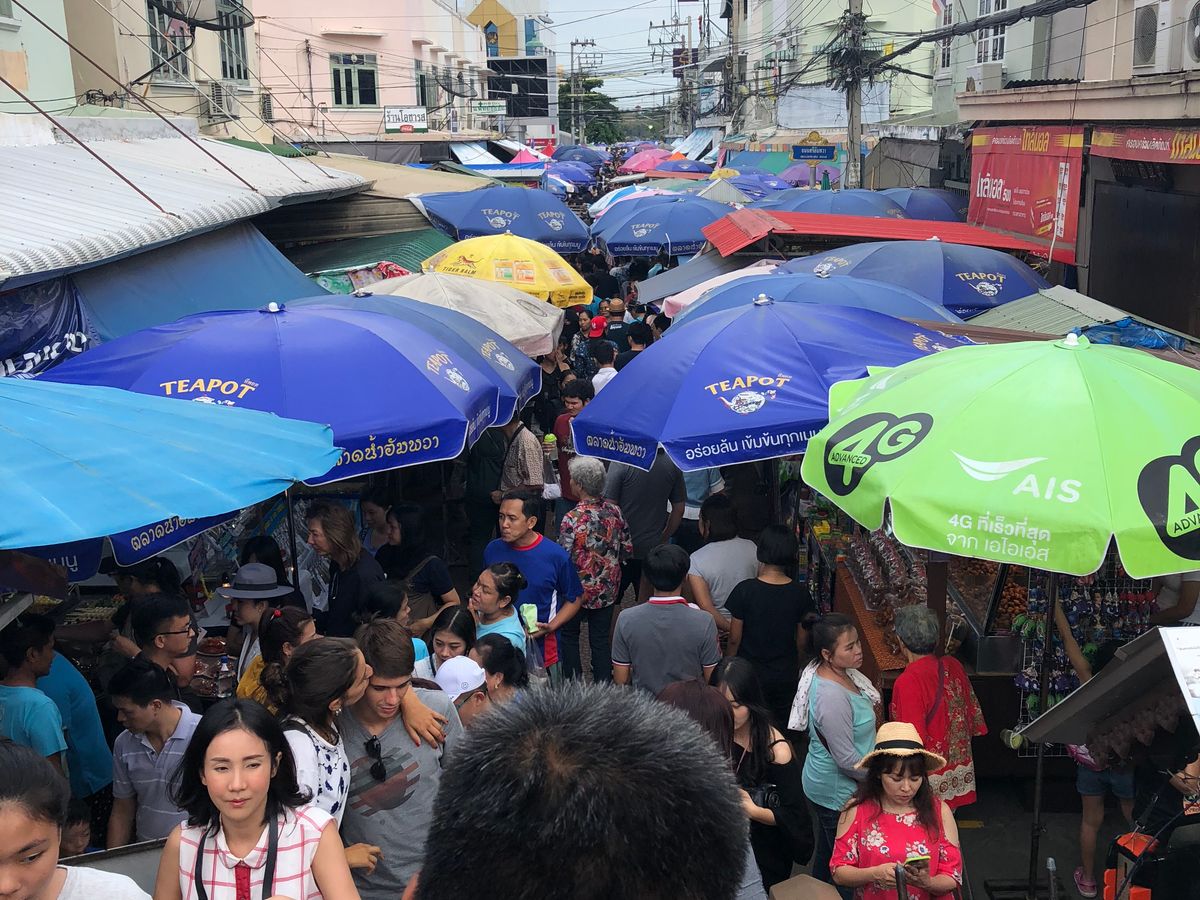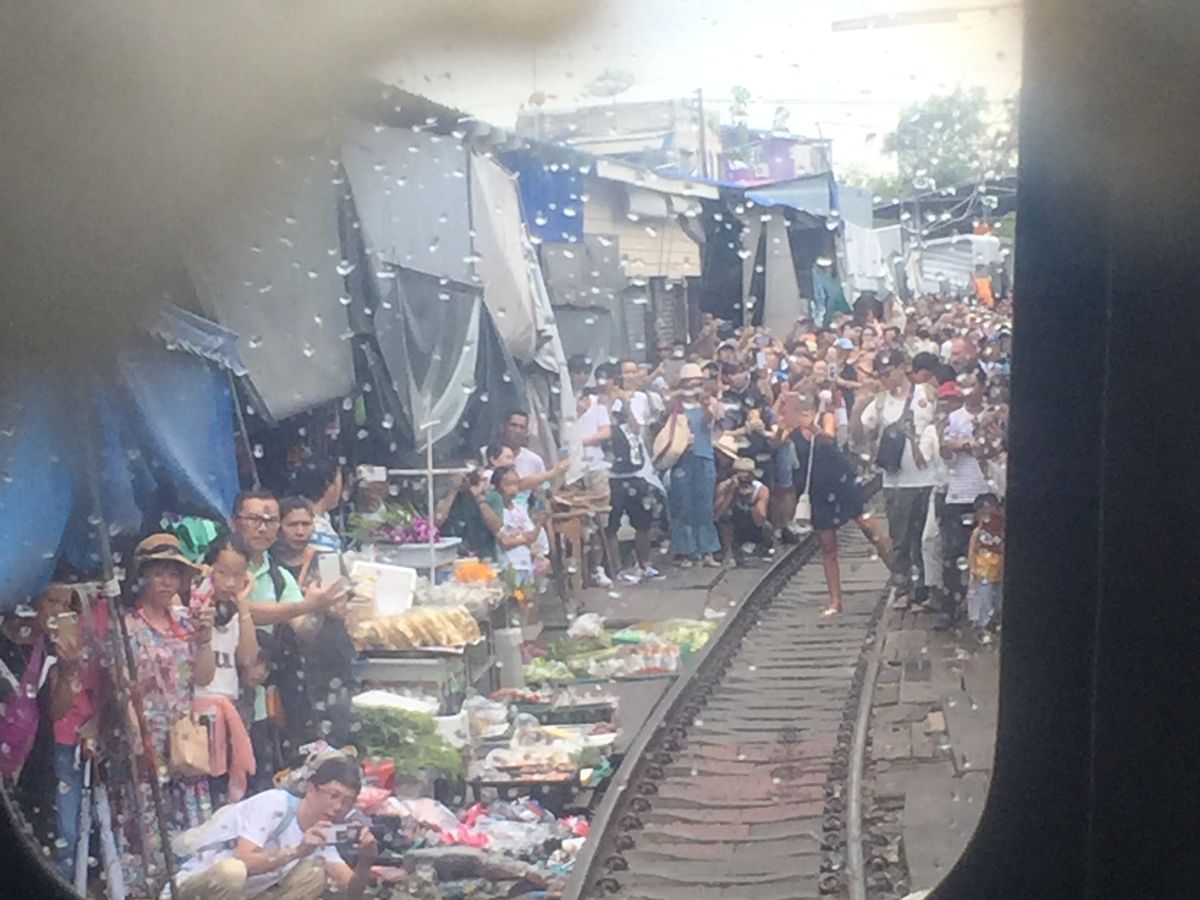 もう1つは、メークロン市場での電車を待つ時、観光客が多すぎて、市場をたたむ様子はほとんど見れませんでした。これを見ようとすると、個人で来て、人混みから離れたところで見ないと店をたたむ様子は見ることができません。