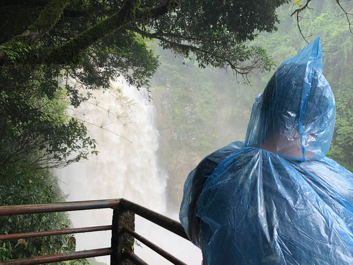 ここから土砂降りになり始めて、使い捨てのカッパが配布されて、想像よりすごかったのが滝。雨季で水量が多く、日本だったらここまで近づけないかもという感覚。ちと階段が急なので体力消耗しましたが。