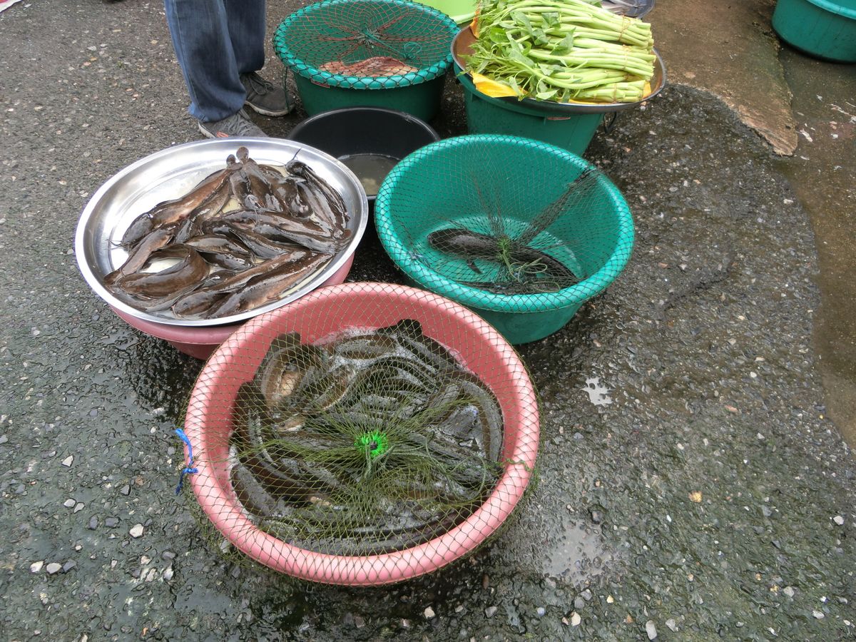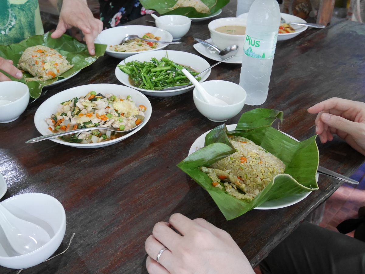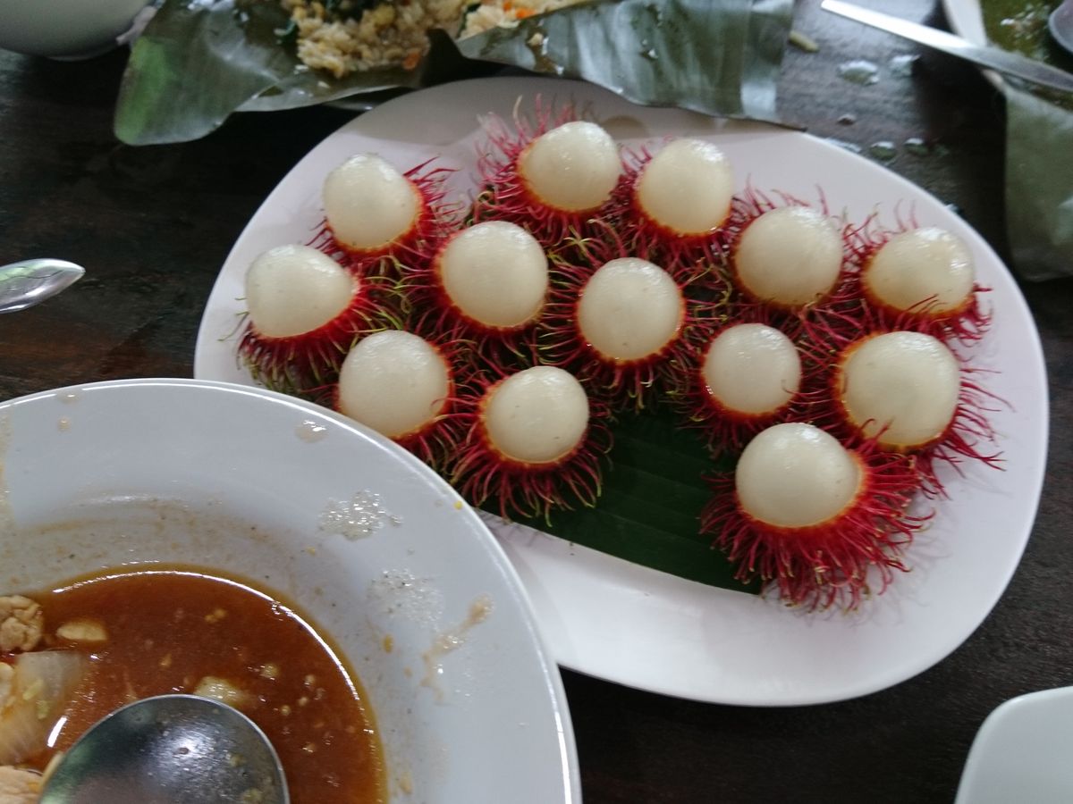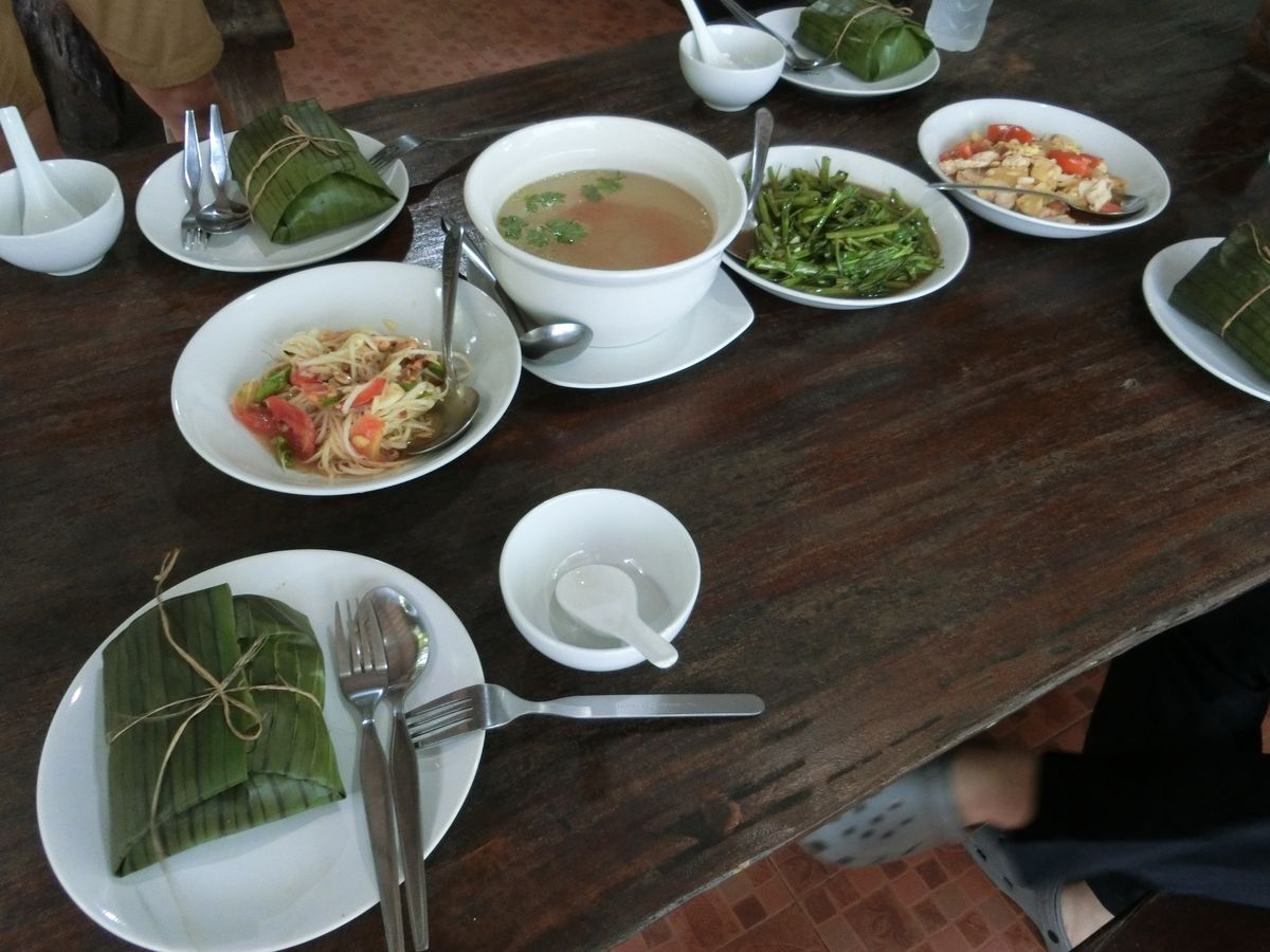 初めに朝市に行きましたが、現地の人の日常がすごく分かるような光景で、食養カエルや豚の頭や、日本では中々見る事ができないような物がたくさんありました。ガイドさんが買ってくれたマドーレーヌのような焼き菓子は普通に美味しかったです。水牛乗りも自然を満喫できたし、その後のお昼ご飯では、サラダと空心菜を作らせてもらい、子供たちにもとても良い経験になりました。お昼ご飯も日本人でも食べやすいような味付けだったように思います。食後にはそこで採れた新鮮なフルーツ(ロンガン、ランブータン)をご馳走になりました。一番思い出に残ったのは、やはり象乗りです。以前にアユタヤで象乗り体験をしましたが、こちらの象乗りは本格的で、ジャングルのような所や、川にまで入って象乗り体験をしました。途中で、象使いの方が降りて、私は前(象使いが乗る場所)に乗せてもらいました。最初は怖かったですが、徐々に慣れてきて本当にいい思い出となりました。下に降りた象使いの方が私のカメラでたくさん写真を撮ってくれたので、たくさん良い写真も撮れました。
