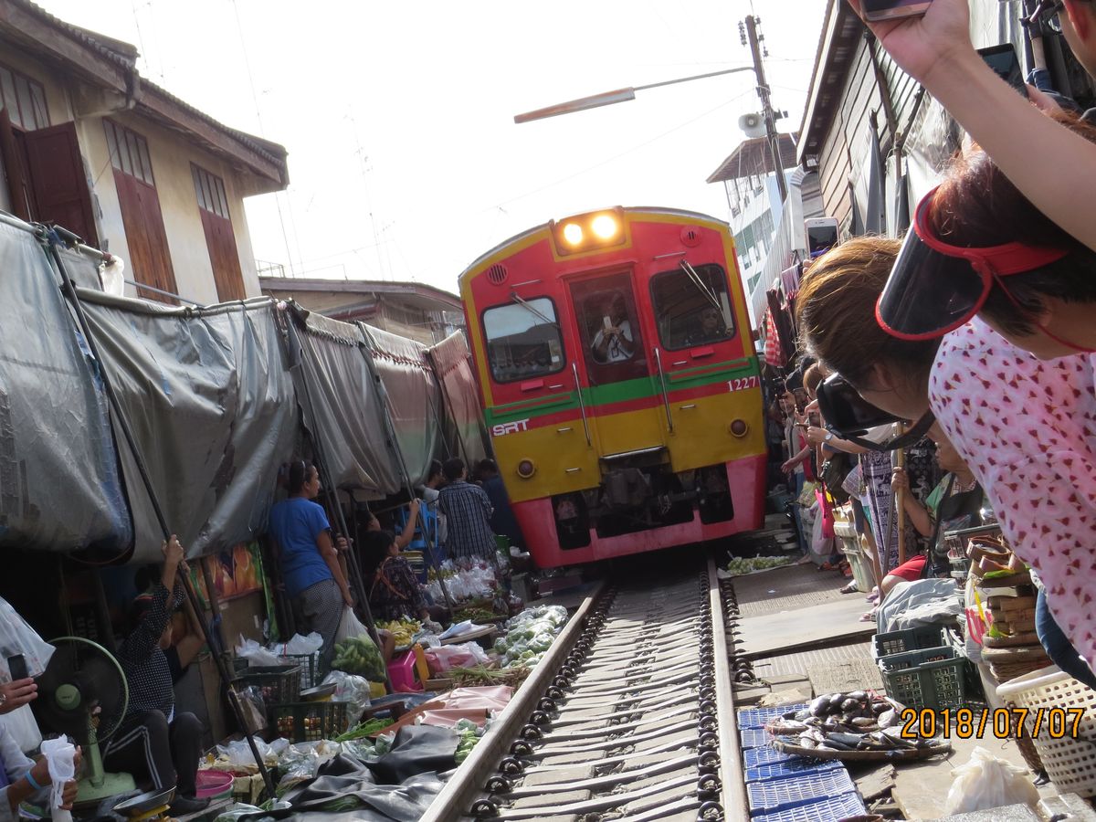 メークロン市場に行くのに、電車に乗ります。