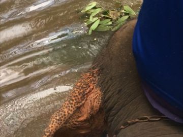 ジャングルの中、川に入り、象使いさんが途中から自分が乗っていた象の頭に移動するよう促して、象使いさんは象から降りて私たちのスマホでたくさんの写真を撮ってくれました!