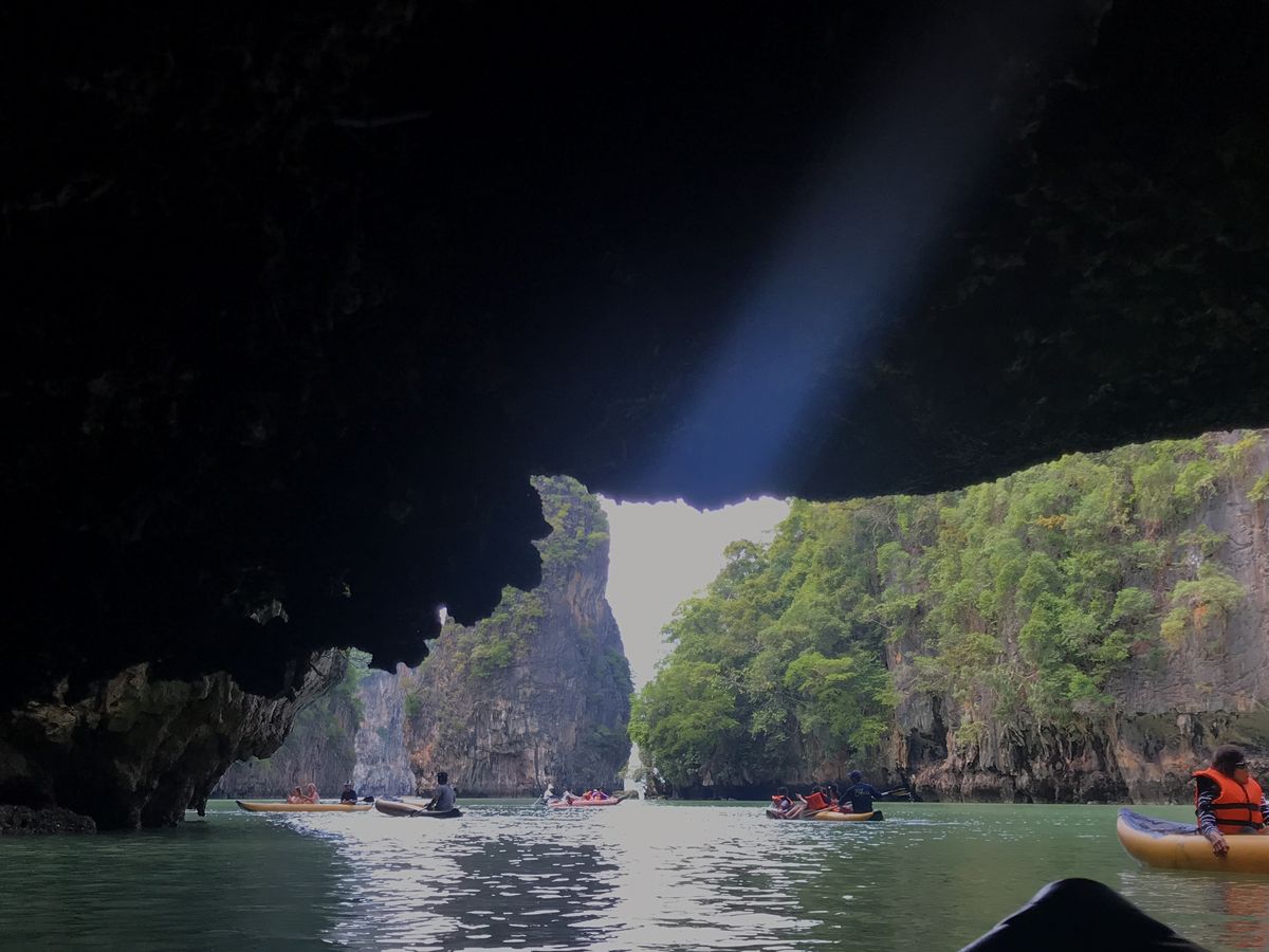 船で最初に着いたジェームスボンド島では違うツアーの人も大勢いたので、置いていかれるのかとヒヤヒヤしながら歩き回り、目印になる人を目の片隅に起き、ウロウロしていました。時間がくると、またゾロゾロと小舟に乗り、ボートに戻っていきました。わたしたちは韓国人のツアーに紛れてしまっていたので実際のことはわかりませんが、小舟に乗るのに500バーツと書かれた紙をツアーガイドが持っていたので、もしかしたジェームスボンド島に運んでもらうのに1人別途2000円ほどかかるかもしれないので、それは注意です!