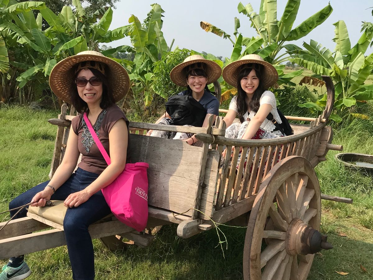 最初に水牛乗りの体験をしたのですが牛車の手綱も持たせてもらい、怖いながらも面白い体験でした。