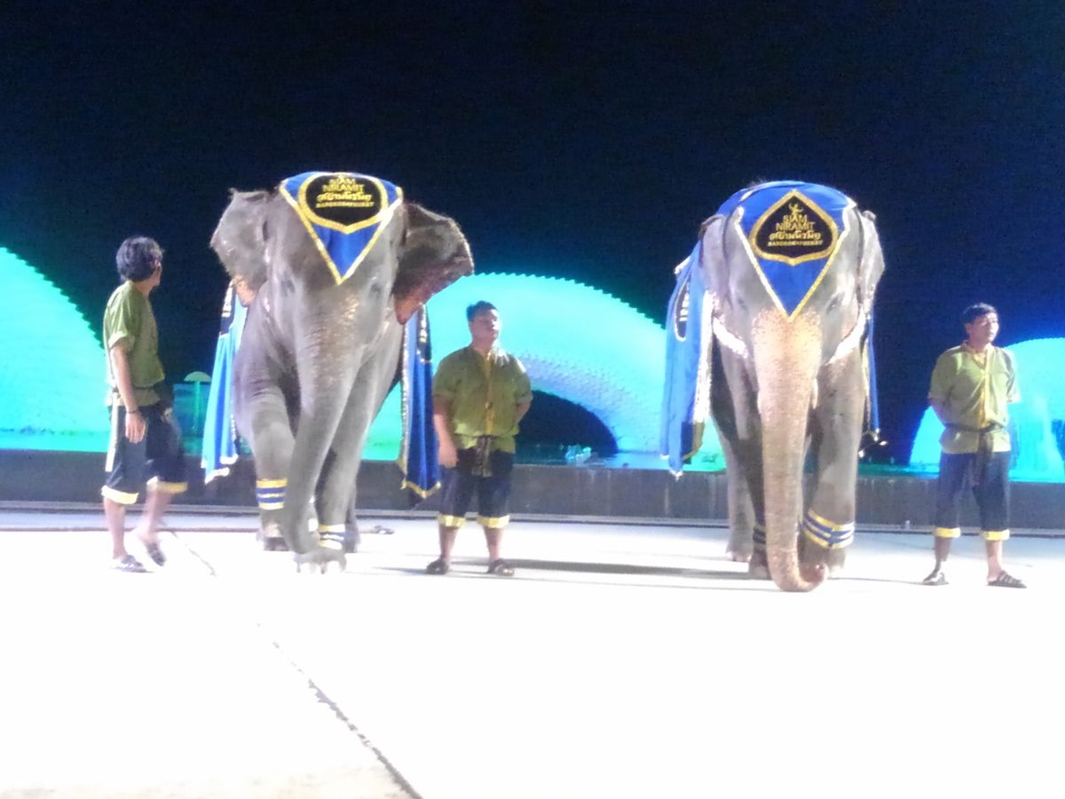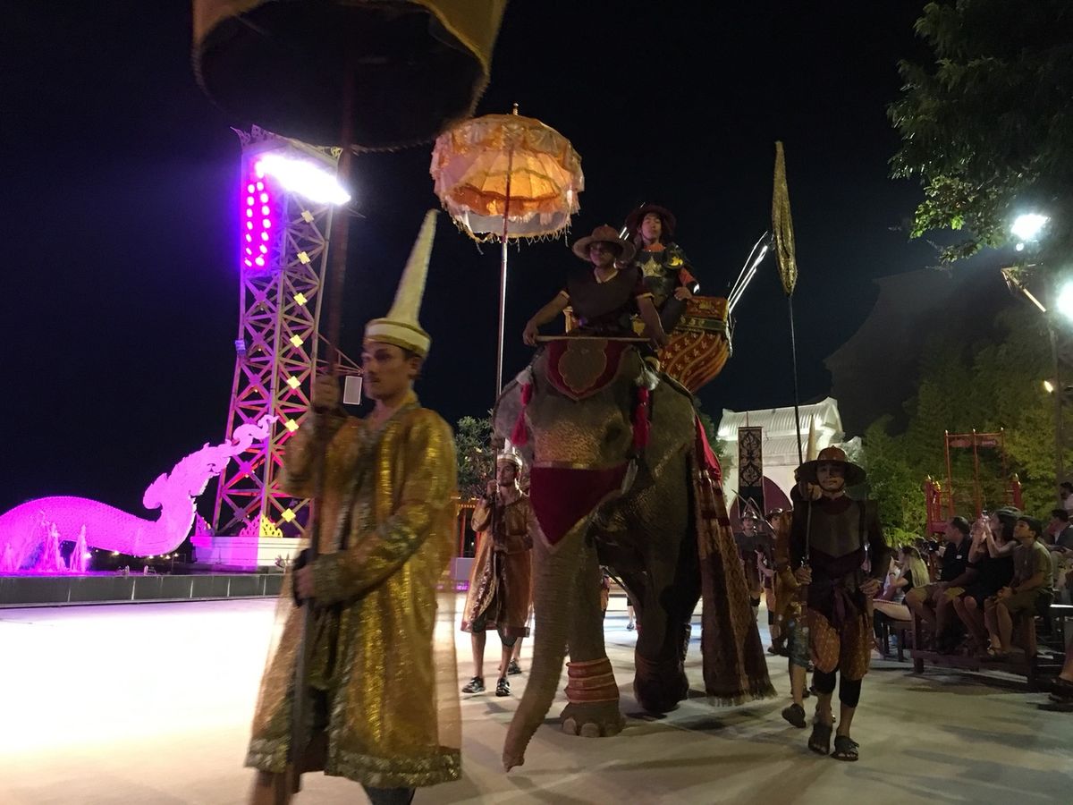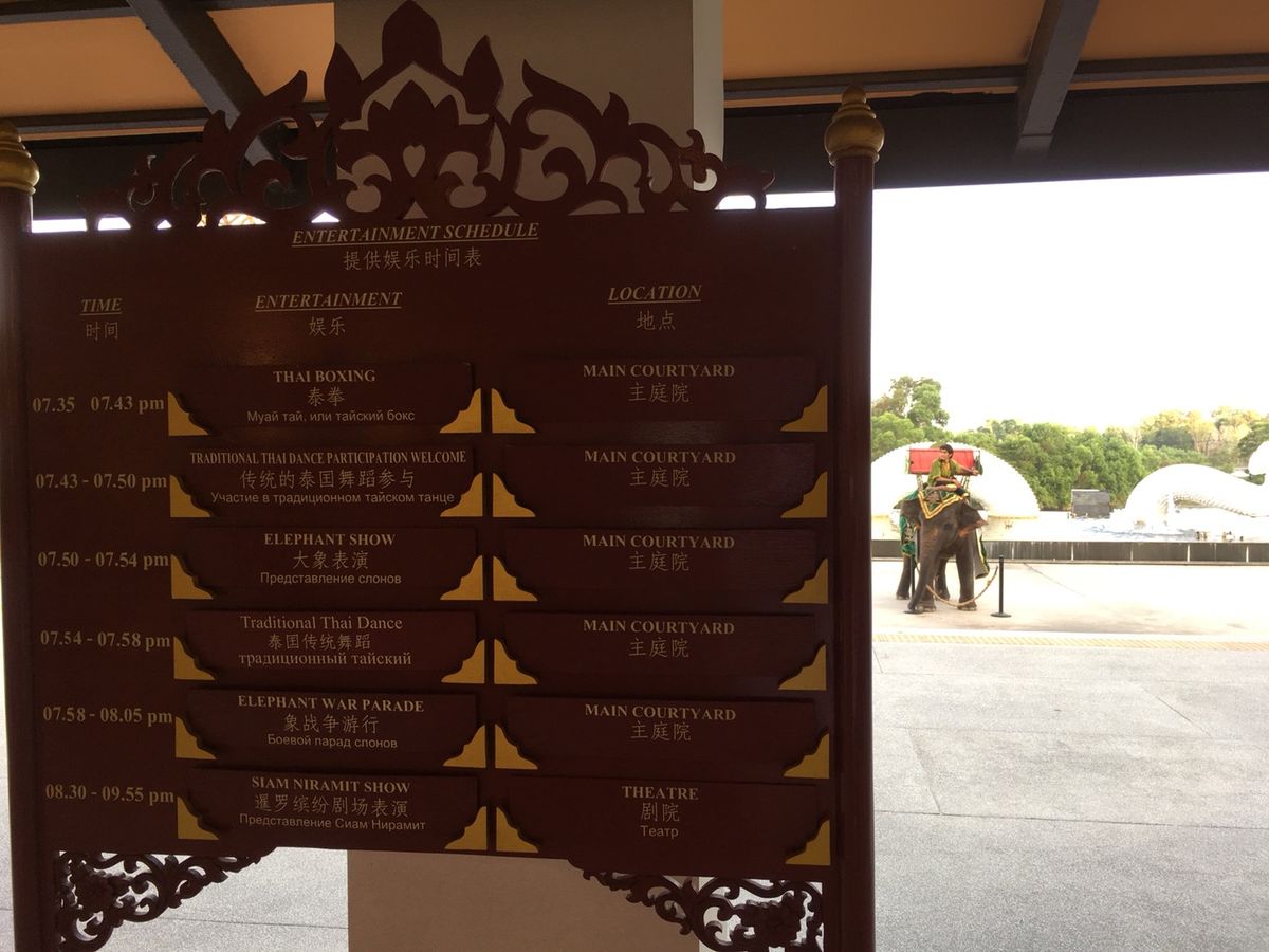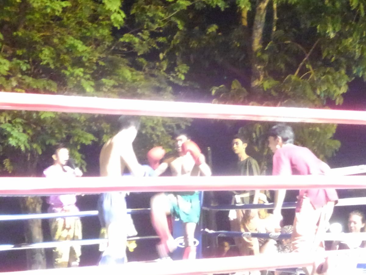 その後、子供たちは、象にバナナをあげたり、ダーツや射的で遊んだりしながら時間を潰し、見たかったムエタイを間近で見て、フォークダンスか盆踊りの様なダンス(娘はお兄さんに誘われて、一緒に参加しました)や象のショー等を観覧しました。写真撮影タイムを作ってくれたりと、サービス精神旺盛でした。