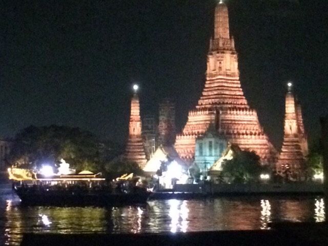 暁の寺といわれるワットアルンですが、夕方や夜に見るのも綺麗です。一度見た方も、夜のクルーズや対岸のレストランで食事しながら見るのがお勧めです。