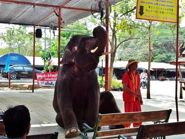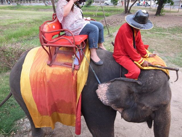 アユタヤも良かったけど、オマケでついてた象乗り体験が一番おもしろかった!添乗員さんがバナナを買ってくれて象にエサまであげれて、象乗りは10分位だけど、充分だった気がします。写真もいっぱい撮ってくれますが、ここでもチップを要求。タイは20バーツが沢山いります。
