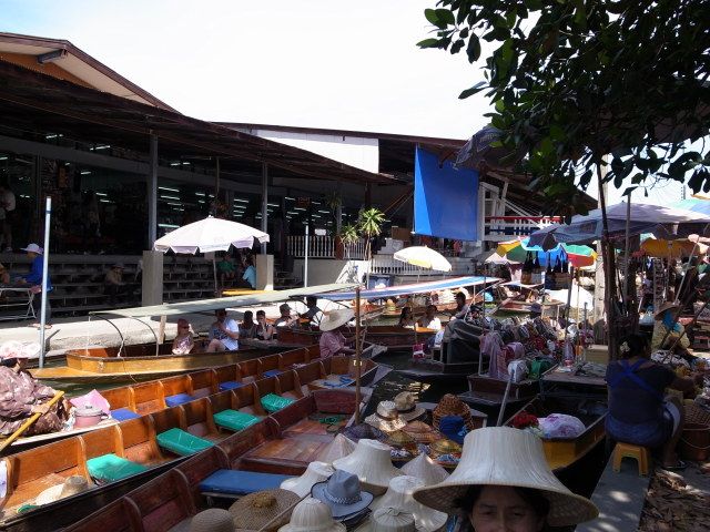 母娘で参加しました。市場までのボートは、水上生活をしている家屋をゆっくり眺めながら(時には猛スピードで)趣ある風景を楽しめました。 手漕ぎボートの時間は短めでしたが、食べ物や雑貨を売っているたくさんのボートの横をすり抜けながらのショッピングはおもしろかったですよ。食べ物は安くなりませんが、雑貨などは、交渉するとどんどん安くなりますので、値切る事!(最初はかなり高い値段が付いています)