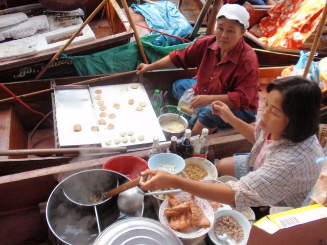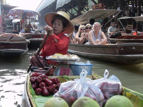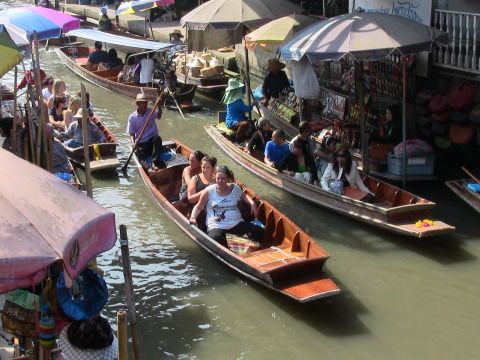 タイのアクティビティーの中でとても興味を持ったので、友達と二人で水上マーケットに行って来ました。私は「セントリックラチャダー」というホテルに泊まっていたのですが、そこまで送迎付き(6:10)で2時間ほどかけて、ワゴンの大きめな車で行きました。ココナッツファームは意外にあっけない感じでしたが、ココナッツのお土産や実演的なものをやっている程度でした。その後、また車を走らせ水上マーケット付近から水上ボート5人乗りほどで水上マーケットに20分ほどかけていきました。この水上ボートはとても楽しかったし、実際水上で生活している人の様子なども見れてとても気持ち良かったです!!