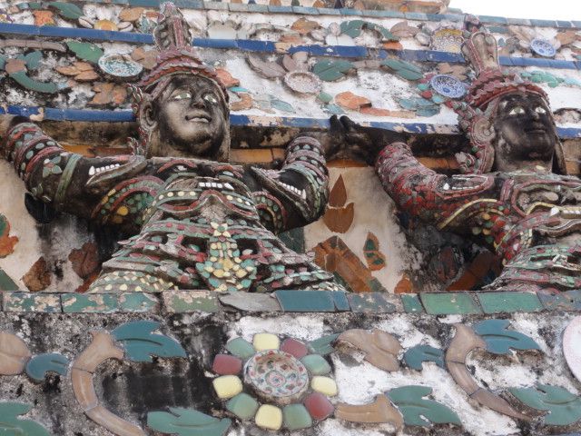 雨も小ぶりになり、チャオプラヤー川を舟で渡らせてもらって実際行ってみると、王宮の大きさ色彩の美しさ、模様、壁画の物語や絵柄、どれをとっても素晴らしく感動しました。日曜日だったこともあり、たくさんの人でいっぱいだしツアーなので1つ1つ見るのに時間制限ありは仕方ないこと。王宮観光は個人的にもう一度ゆっくりじっくり見て回りたいと思いました。