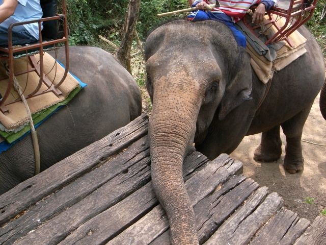確かに以前行ったチェンマイでのエレファントトレッキングは椅子に乗っているだけでした。