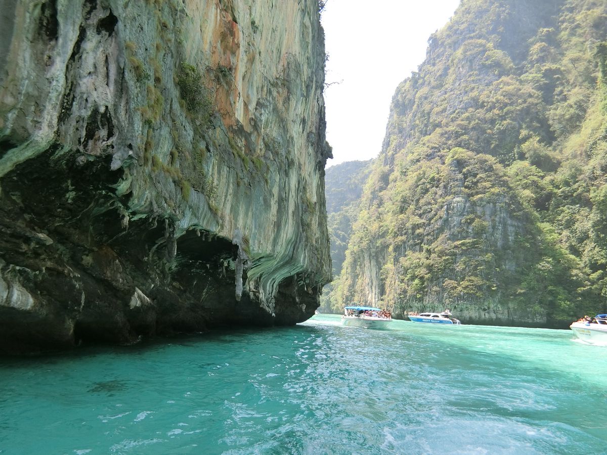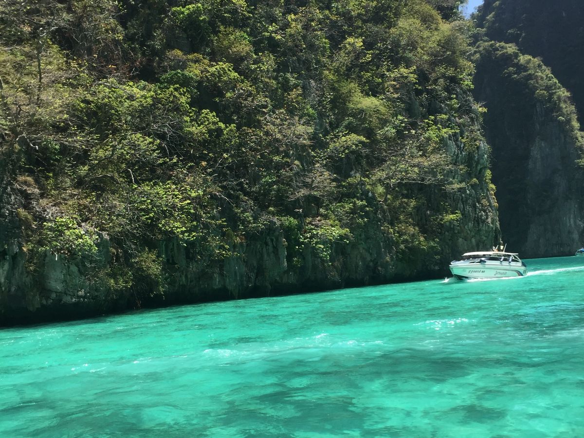私もプーケットに住んで十年以上経ちますが、何度ピピ島に行っても、あの海の色には感動します。