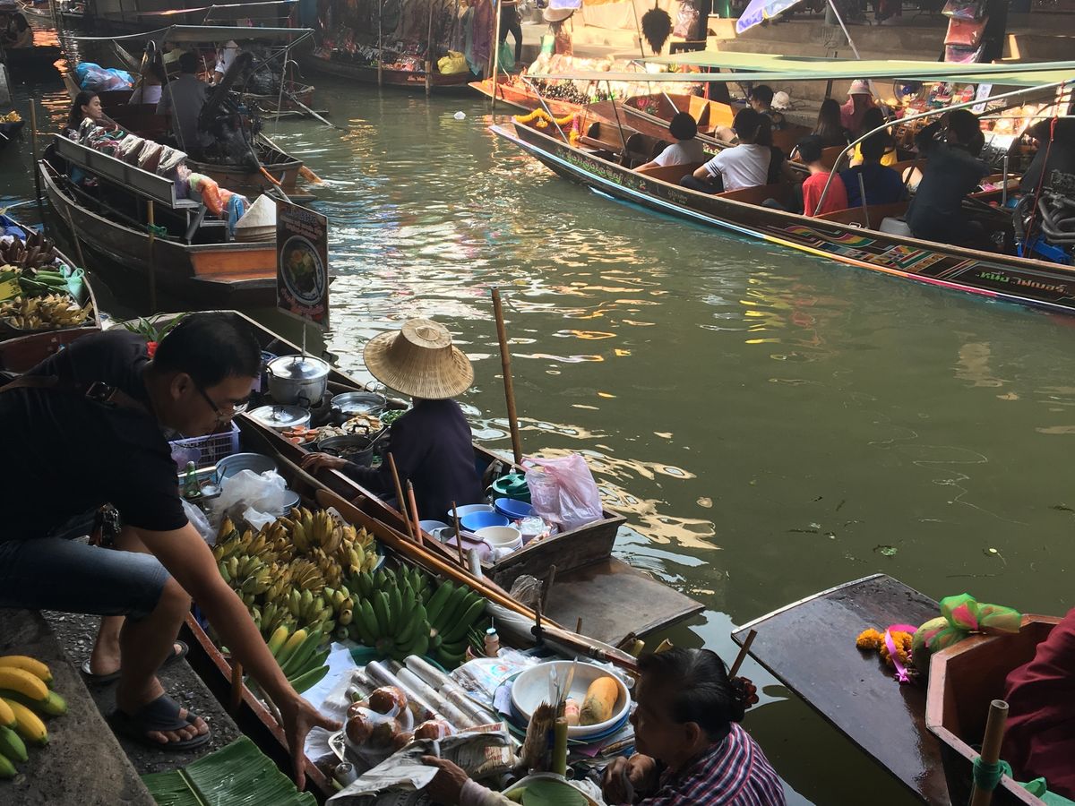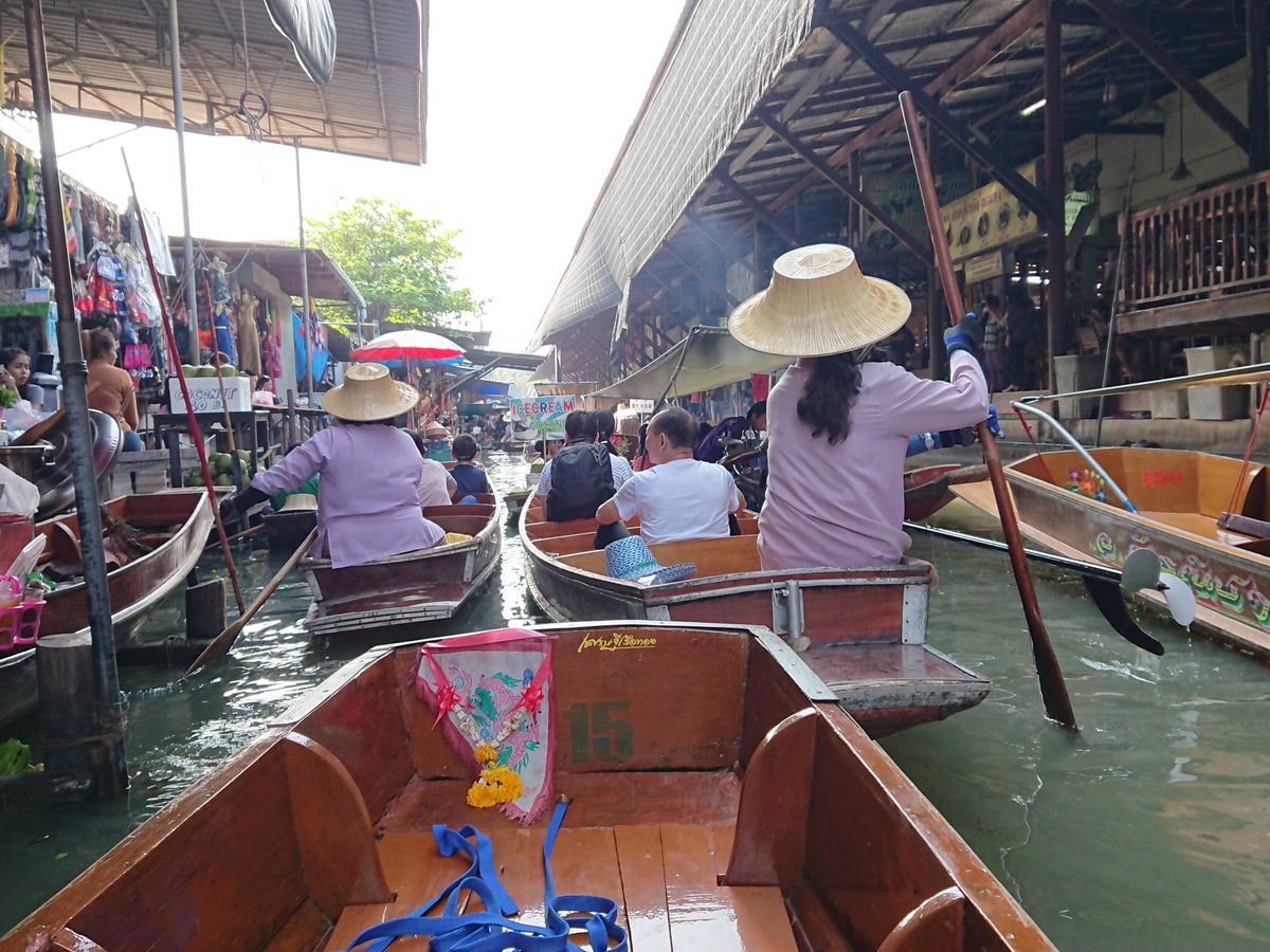 今回、手漕ぎボート付きツアーに参加しました。混乱することもなくスムーズに乗れました。早目に着いたので混雑なく乗って行きましたが、降りる時には人が増えていたのでなかなか降りれませんでした。マーケットの中を通りバスにのりましたが、もう少しマーケットもゆっくり見たかったな…と思いました。ココナッツアイスを食べました。買い物関係は、どこにでもあるしここで買う必要性はないかな…