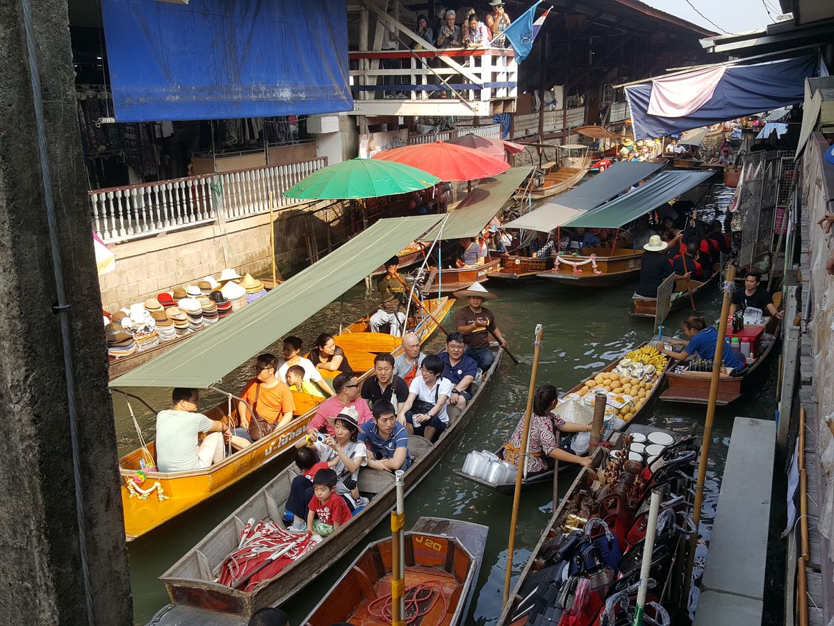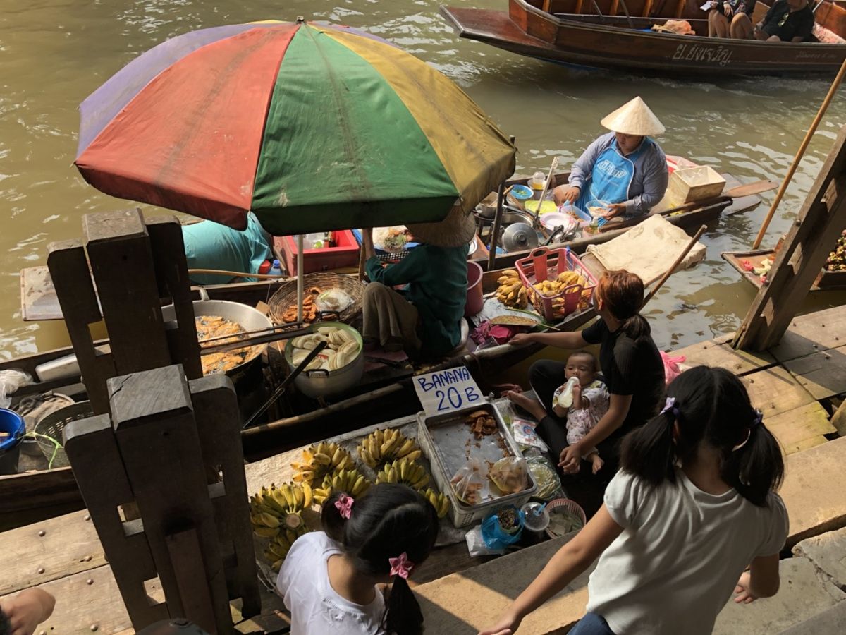 水上マーケットでは、現地追加料金でてこぎ船に乗り買い物が出来るが、特に買い物目当てでなければ乗らなくてもその前に乗るエンジンボートで十分雰囲気は味わえると思う。