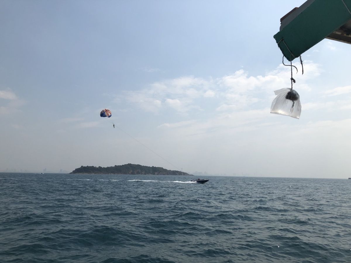 更衣室とロッカーがあるのが良い感じ!海綺麗だし、可愛いお土産もいっぱい売ってるし一日中いれる。パラセーリングは右も左もわからないまま流れ作業でどんどん準備されていき、気付いたら空の上。友達のフライトシーンを撮影したかったのに、自分の準備が始まってしまい携帯置いてと言われてしまい達成ならず。しかし他グループの外国人と仲良くなったので、とても画質は悪いけどなんとか形に残すことができました、、