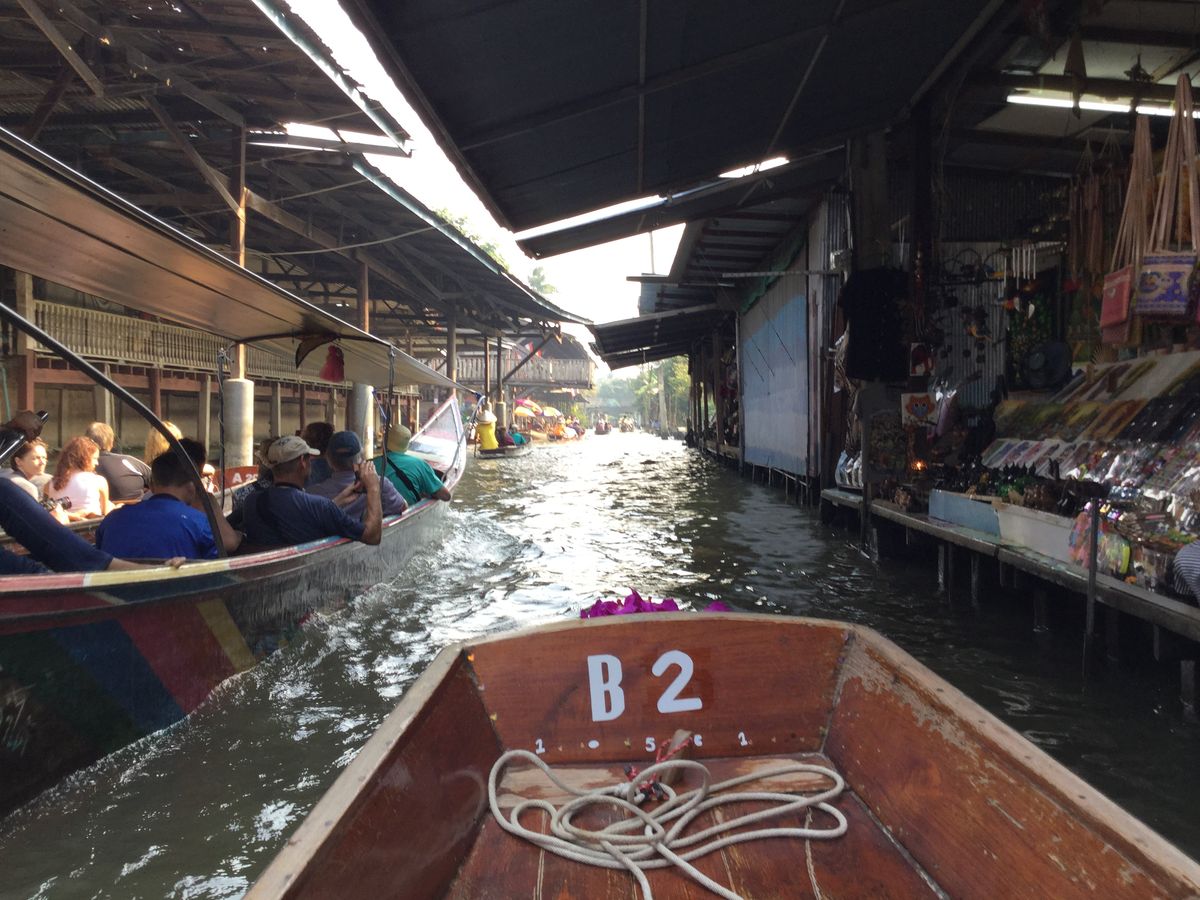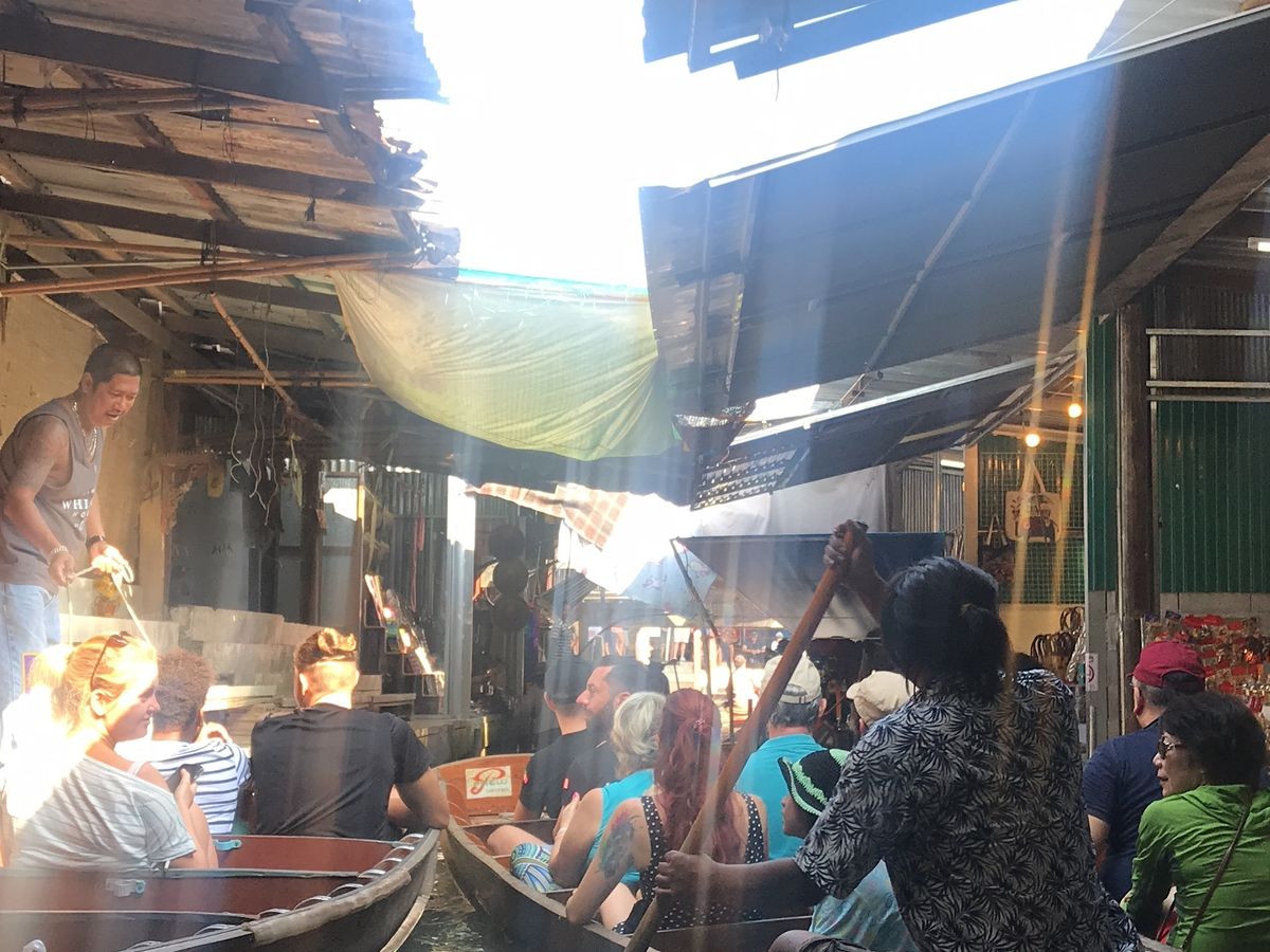 水上マーケットは追加料金で小舟に乗って