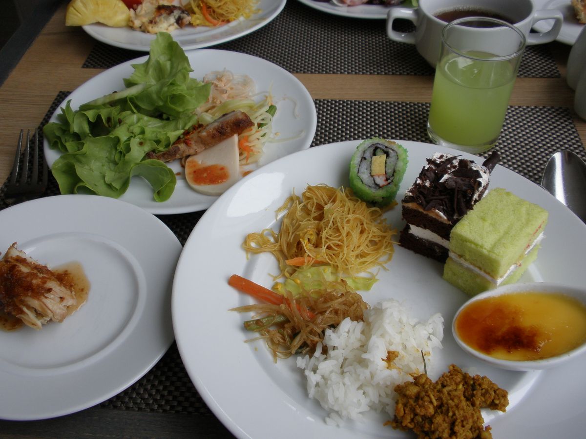 お昼のバイキングでは、少しずつ色んなタイ料理が味わえて、味も美味しく、リッチな昼食でした。