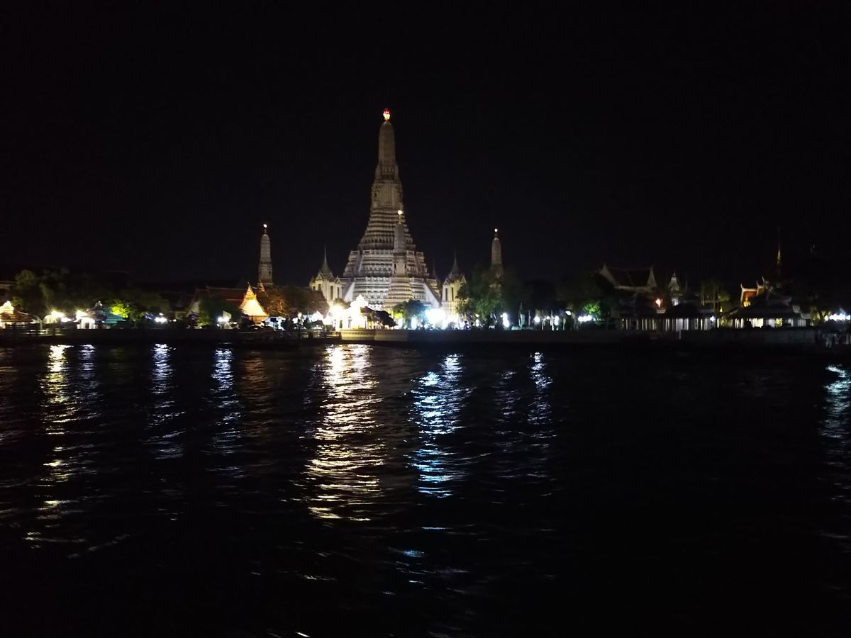 少し河の波が高く揺れましたが、両河にある王宮や暁の寺のライトアップが美しかったです。2階のテラス席でしたが、生バンドの演奏もよく、思い出深い旅でした。