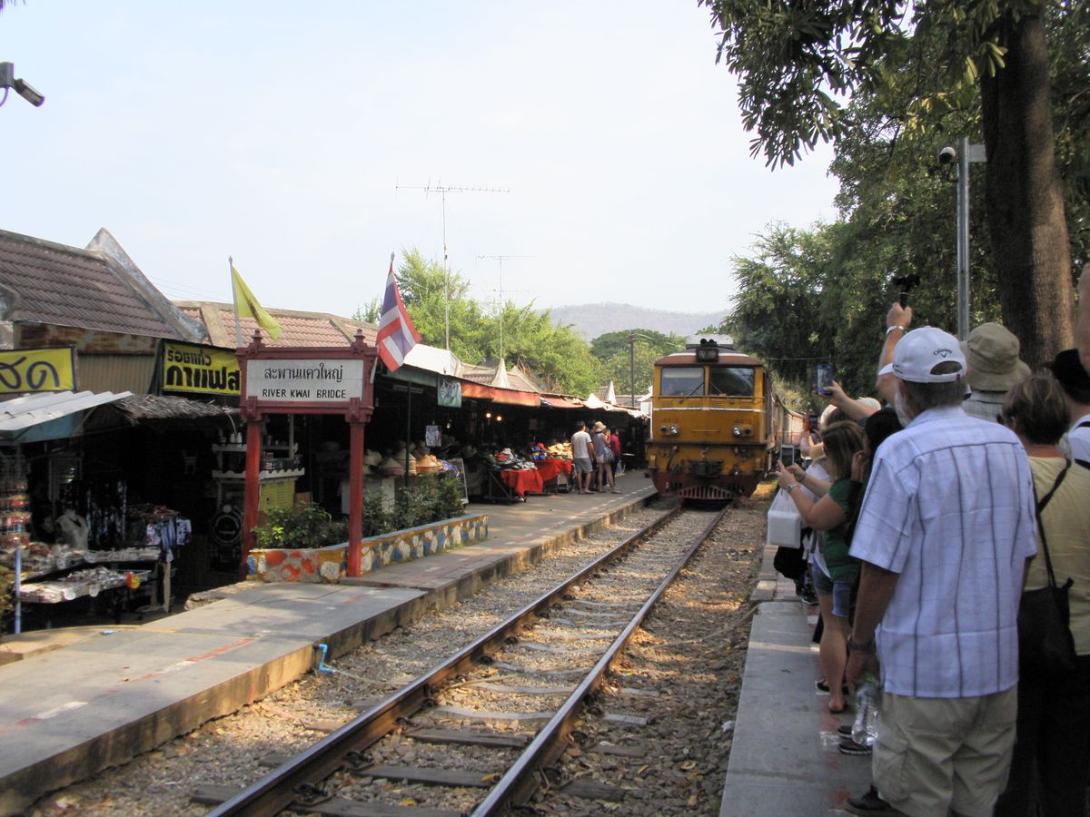 泰面鉄道の電車は指定席で、進行方向左側(タム・クラセー桟道橋のときに川側)が観光客、右側(崖側)がガイドさんたちで配慮されていました。