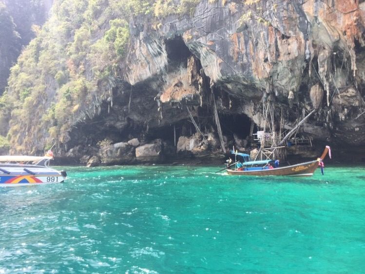 そこから船で島へ向かいましたが、スピードが速いので酔いやすい人は酔い止めを飲んでおくことをオススメします。吐いていた人は誰も居ませんでした。シュノーケリングをしたり猿を見たり、マヤベイに行ったり、天気も良く最高の景色でした。お昼ご飯はビュッフェ形式で近くのコンビニ?でお酒やアイスも買えます。猫も居て可愛かったです。帰りにツアー中撮ってくれていた写真が入ったDVDを購入しました。まだ見ていませんが楽しみです。