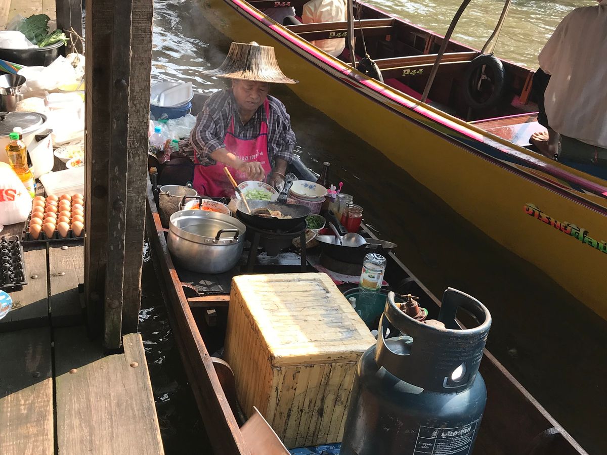 水上マーケットでは、陸地に広がる屋台の方が面白く美味しいフォーが食べられました。船上で調理してるのを見るのも興味深かかったです。