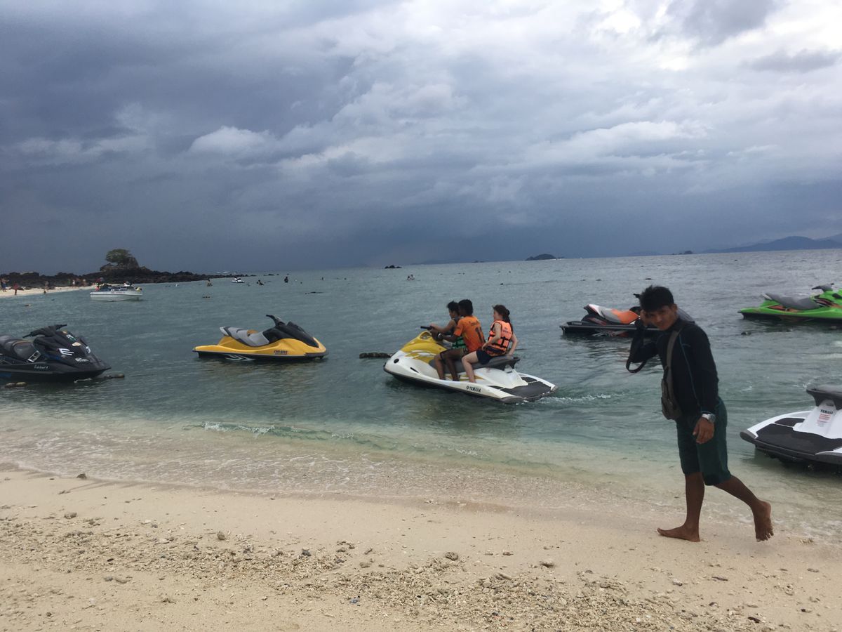 海中のお写真は絶妙なタイミングですね。カイ島にはお写真のように現地業者のマリンスポーツがございますが、あくまでもお客様個人の責任においてご参加いただいております。保険などの適用はございませんので、この場をお借りしてご案内させて頂きます。
