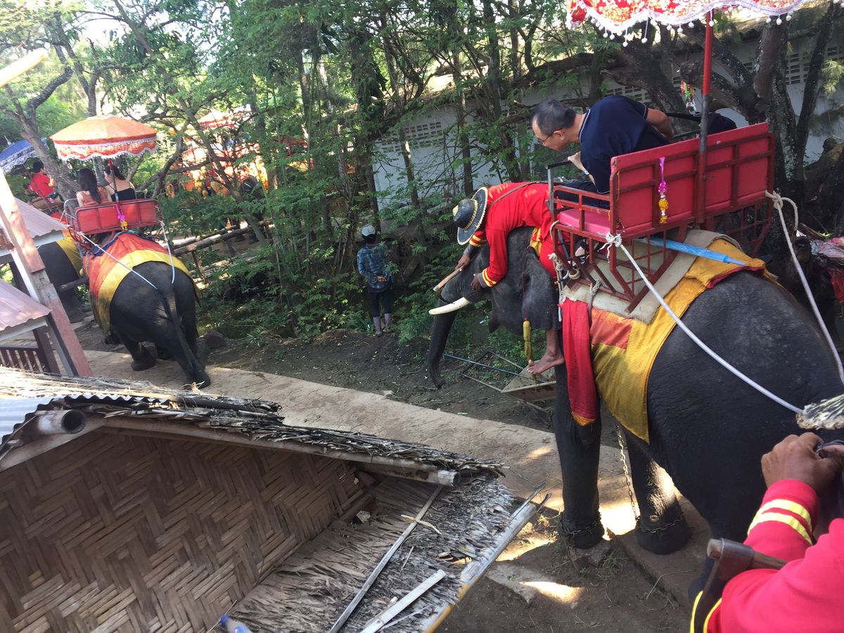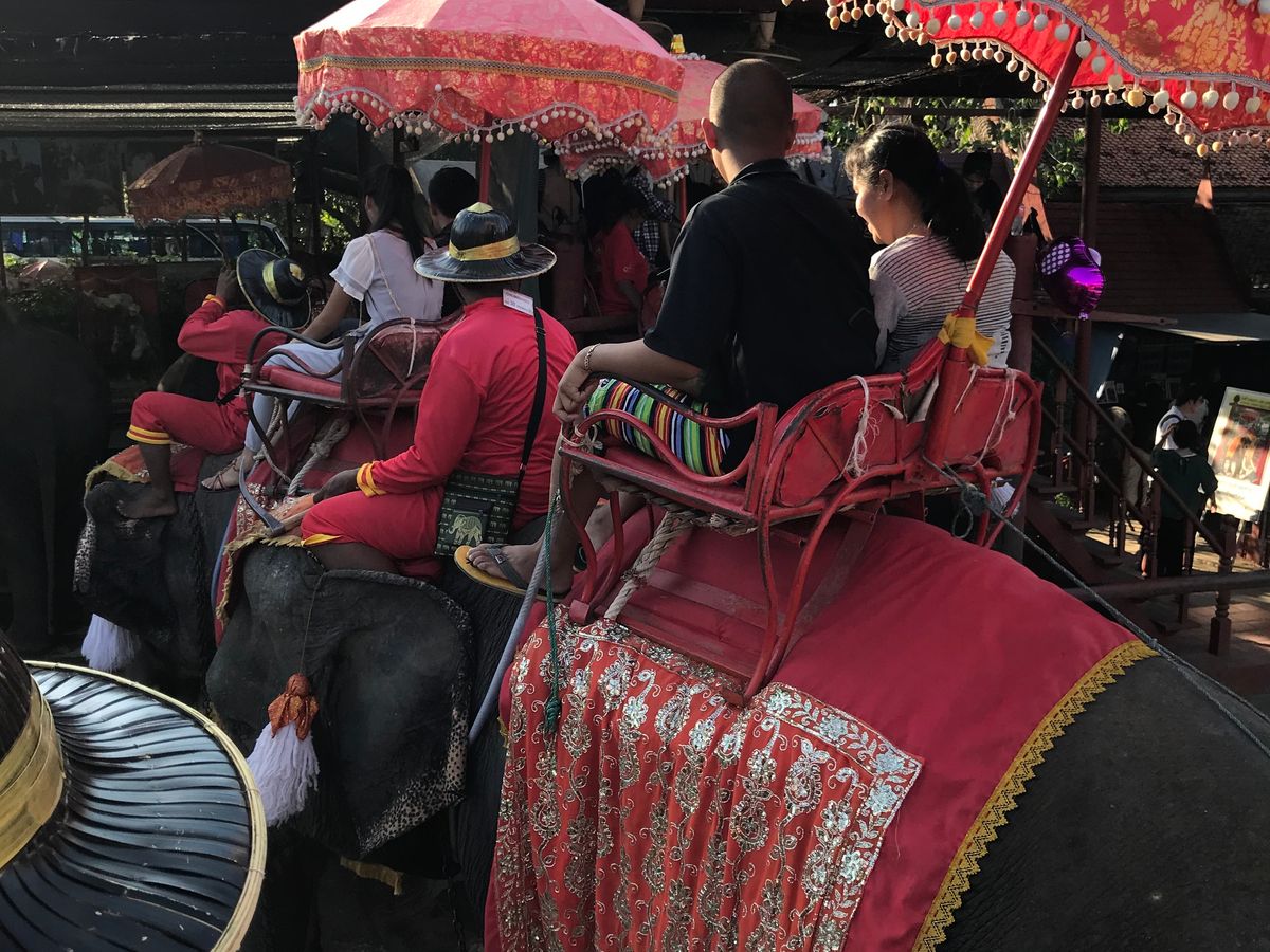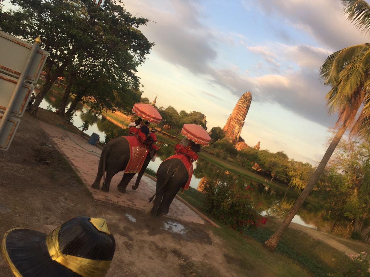 ゾウ乗り→水上マーケット→お昼→アユタヤ→アユタヤを見ながらのゾウ乗り→夜ゴハン→ライトアップ