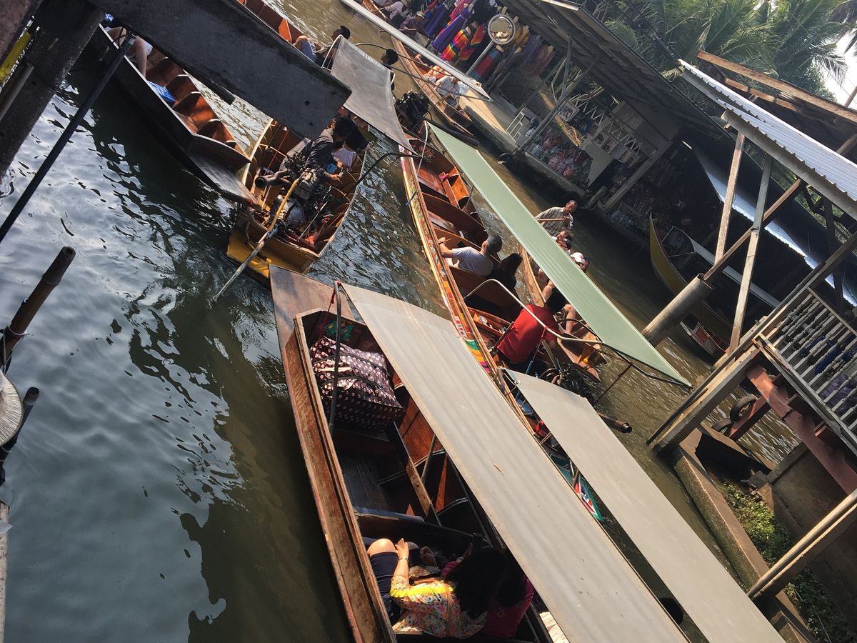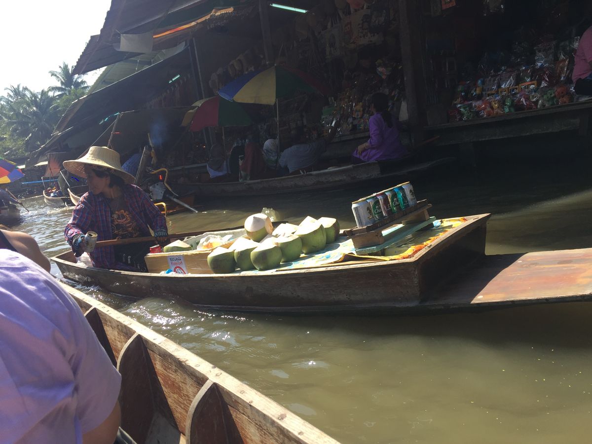 水上マーケットはエンジンボートに乗り、雰囲気を味わったあとに、別途一人200バーツでそのあと手漕ぎボートに乗って買い物を楽しむとゆう感じでした。水上マーケットとツアーでも名前があるくらいなので手漕ぎボートの別途200バーツを最初から料金内につけておいたら良いのに、、と少し思ってしまいました(^_^;)