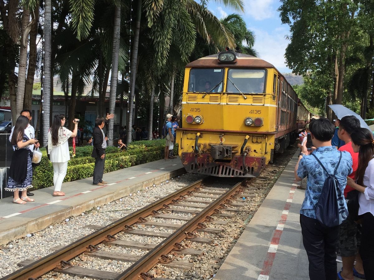 ホテルまでの送迎付ということでこちらのツアーを選択。バンコク市内から1時間でまずナコンパトムに寄り、その後約2時間でカンチャナブリへ。戦争博物館→クウェー川鉄道駅から泰面鉄道に乗車、昼食後に共同墓地を見学しバンコクに17時頃戻るといったスケジュールでした。電車の待ち時間の関係からかな?当初想定していたクウェー川鉄橋での散策ができなかったのは残念でしたが、車窓からの風景がのんびりした感じで良かったと思います。鉄道乗車以外は少し駆け足での見学でしたが、どうしても行きたかったカンチャナブリを満喫できました。同じツアー参加の方々も皆さん親切な方で楽しい一日となりました。