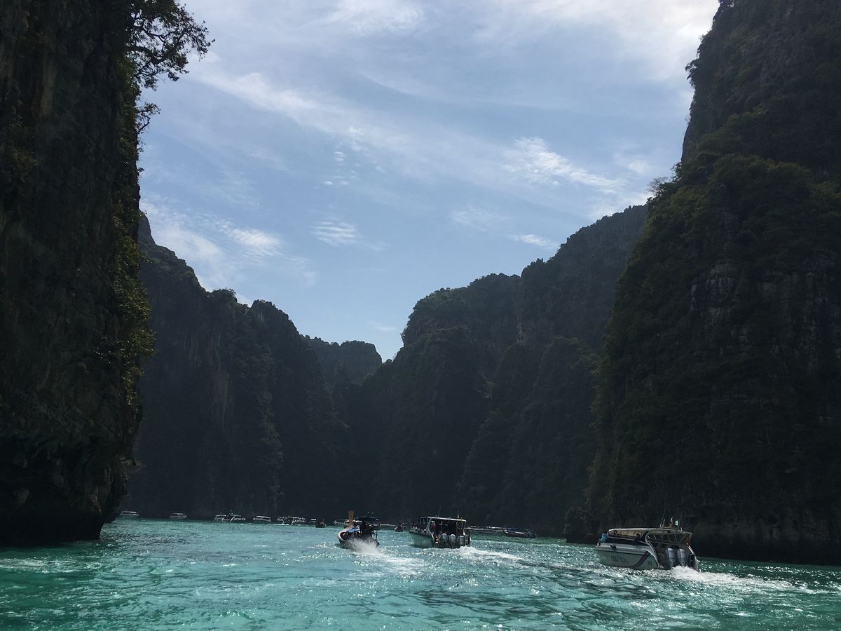 マヤベイに着いた時には曇ってしまったため残念でしたが、それでも海はエメラルドグリーンで日本では見れない光景でした^_^