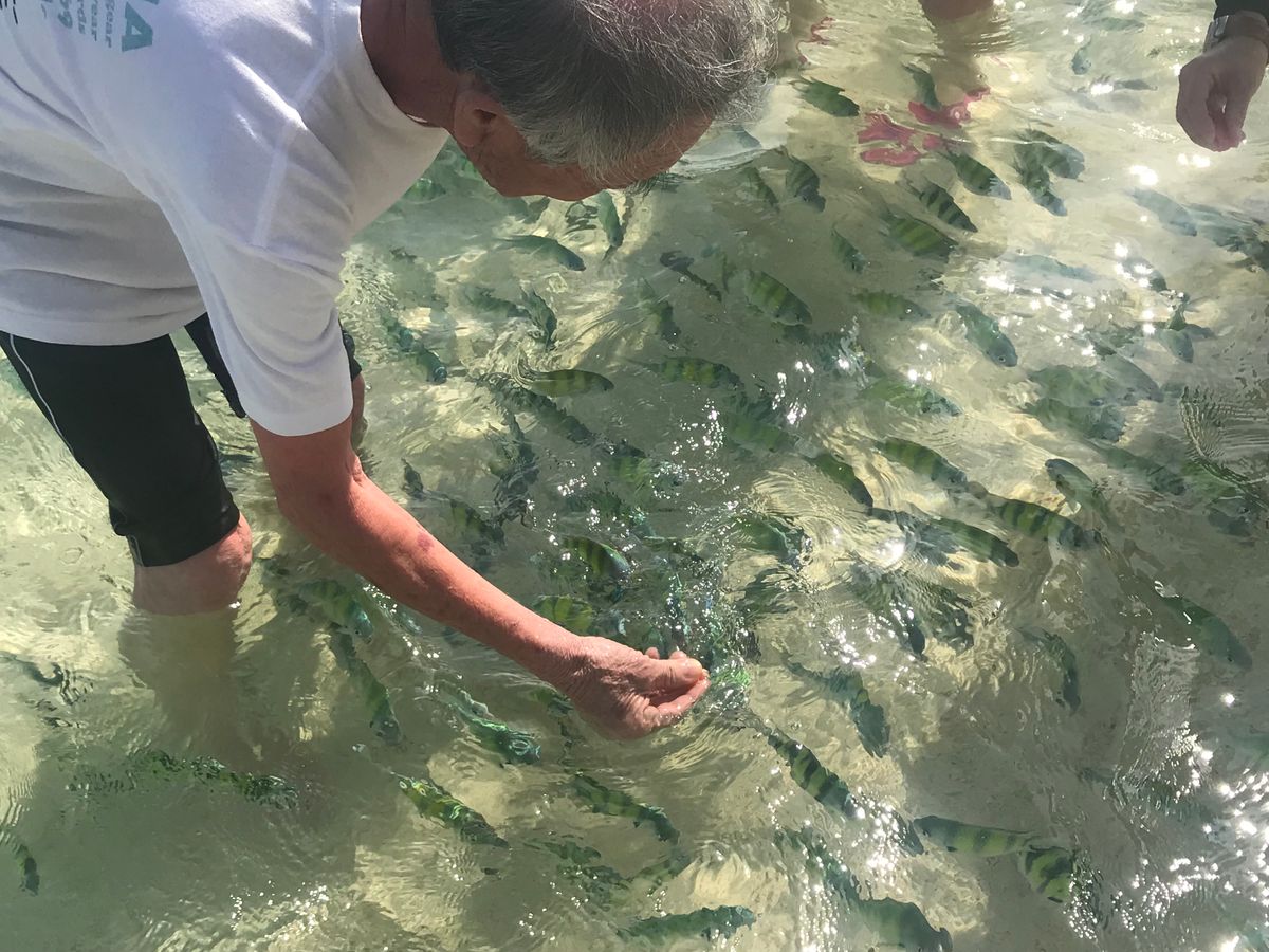 浜で荷物見てくれたり、魚が居る所を教えてくれて、餌をくれたり、多くの観光客がいる中でも声かけてくれたり、サービスマンとして優秀でした。