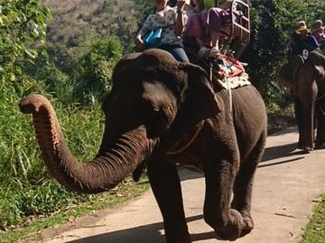 ダイヤモンドクリフリゾート&スパから送迎のトゥクトゥクで15分位の山中に突如象がいる場所があり、そこで気軽に象乗りが楽しめます。象の餌として100バーツかかりますが、餌付けしているところを写真で撮ってもらえるので、購入した方がいいと思います。