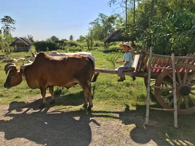 8歳の息子&私(母)の2人で参加いたしました。日本人の他にイタリア人、ルーマニア人等国際色とても豊かな1日でした。マーケット、牛車(牛車は思ったより長い時間ゆったりと乗り、のどかな風景でとても良かったです)、滝(階段がとても急です!フットワーク勝負!ですが、とても珍しいとかげを沢山目撃しました)、山小屋風な場所でランチ(少し調理をお手伝いしたり、とても楽しくておいしかったです。辛さが苦手な息子もおいしくいただく事ができました)をした後に、いよいよ午後は象乗り。移動に少し時間がかかるのですが、野生の象にも遭遇しました。象乗りは、想像以上にとても良かったです。象使いさんもとても明るく良い方で、8歳の息子を楽しませてくださいました。象さんに20Bで餌もあげられます。ガイドさんは、英語ONLY の方と、日本語OKの方の2名だったのですが、この暑い気候の中、ハードスケジュールでもお二人共終始皆さんに気を使い、楽しませて下さり本当に最高のツアーでした。初海外の息子に、またと無いとても良い刺激&経験を頂きました。体力はかなり使いますが、とってもお勧めです!!!