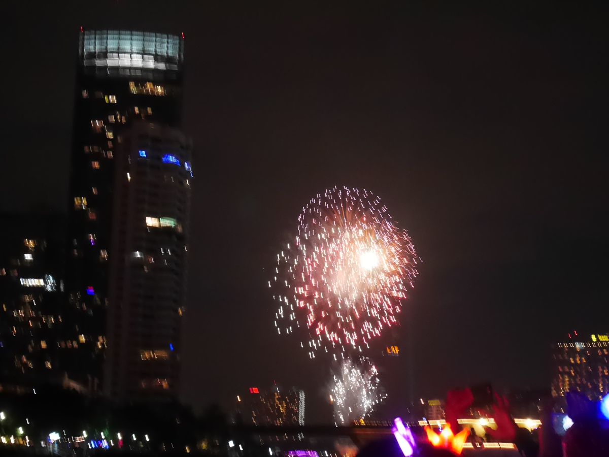 昼の風景とは違い、いろいろなところがライトアップされてよかったです。また、カウントダウンの花火も船上から見ることができて良かったです。