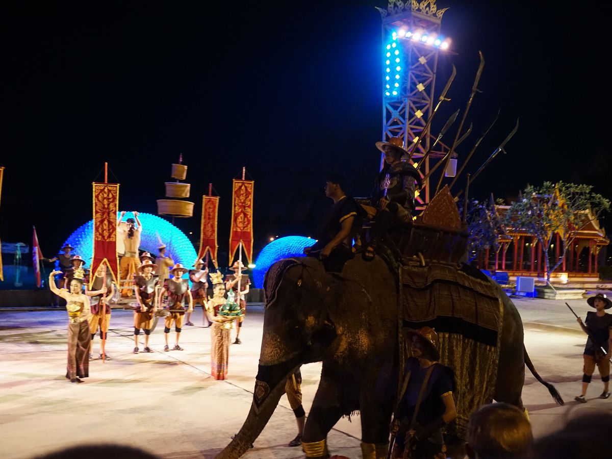 息子夫婦と4人で参加しました。忽然と現れた煌びやかなテーマパークにびっくり。想像以上のスケールでした。開演までは園内のお土産屋さんや象乗りなどで過ごせます。