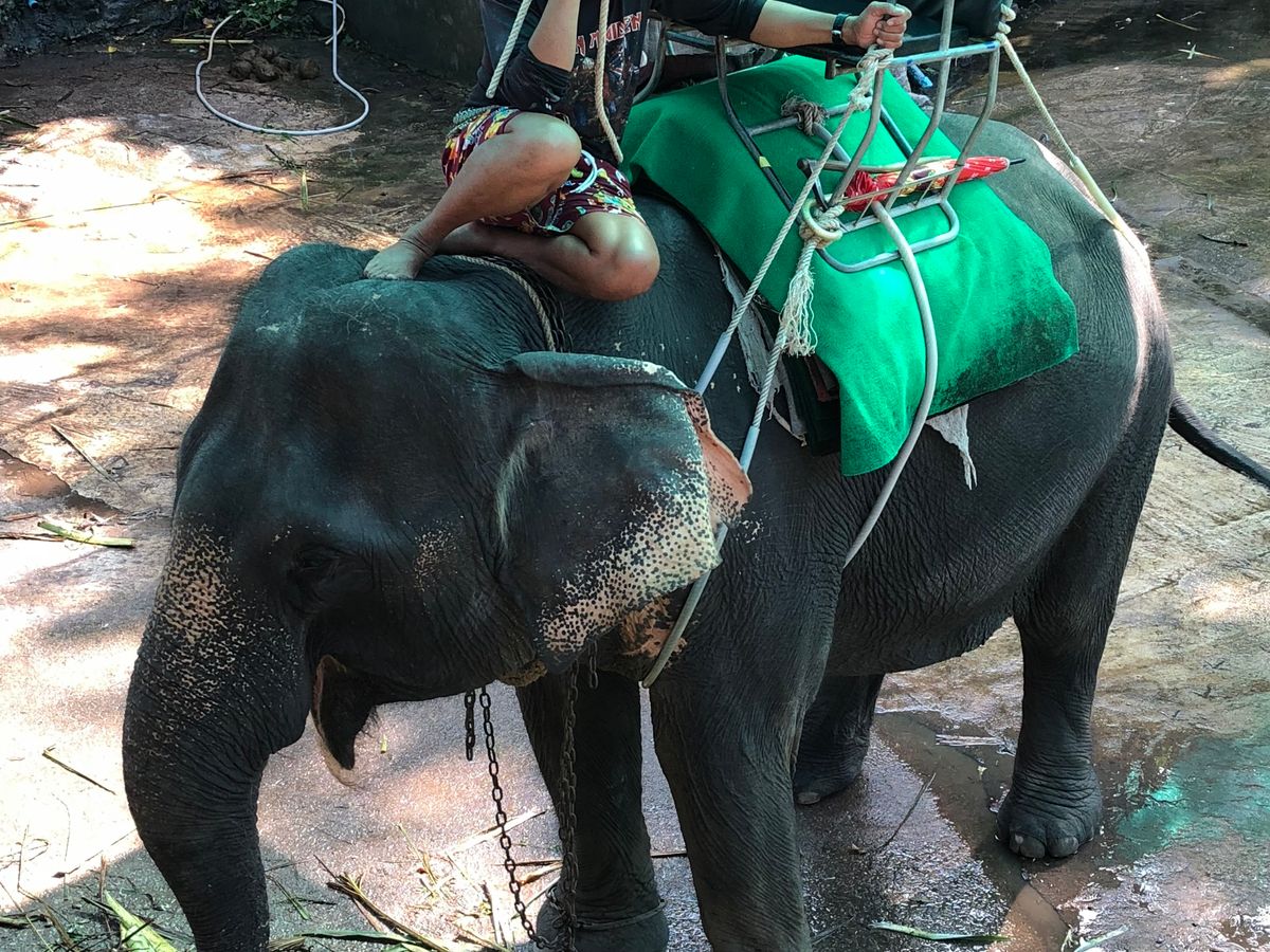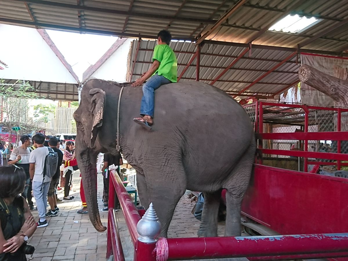 象使いさんへチップを200バーツ払い、写真をたくさん撮ってもらい、楽しかったです!!象使いさんが座る場所(象の頭)に直乗りもできて、大興奮でしたー!いろんなポージングで写真を撮ってくれて、思い出がたっぷり残せました!象使いさんは、カタコトの日本語で、たくさんジョークも言ってくれて、楽しいひと時でした。