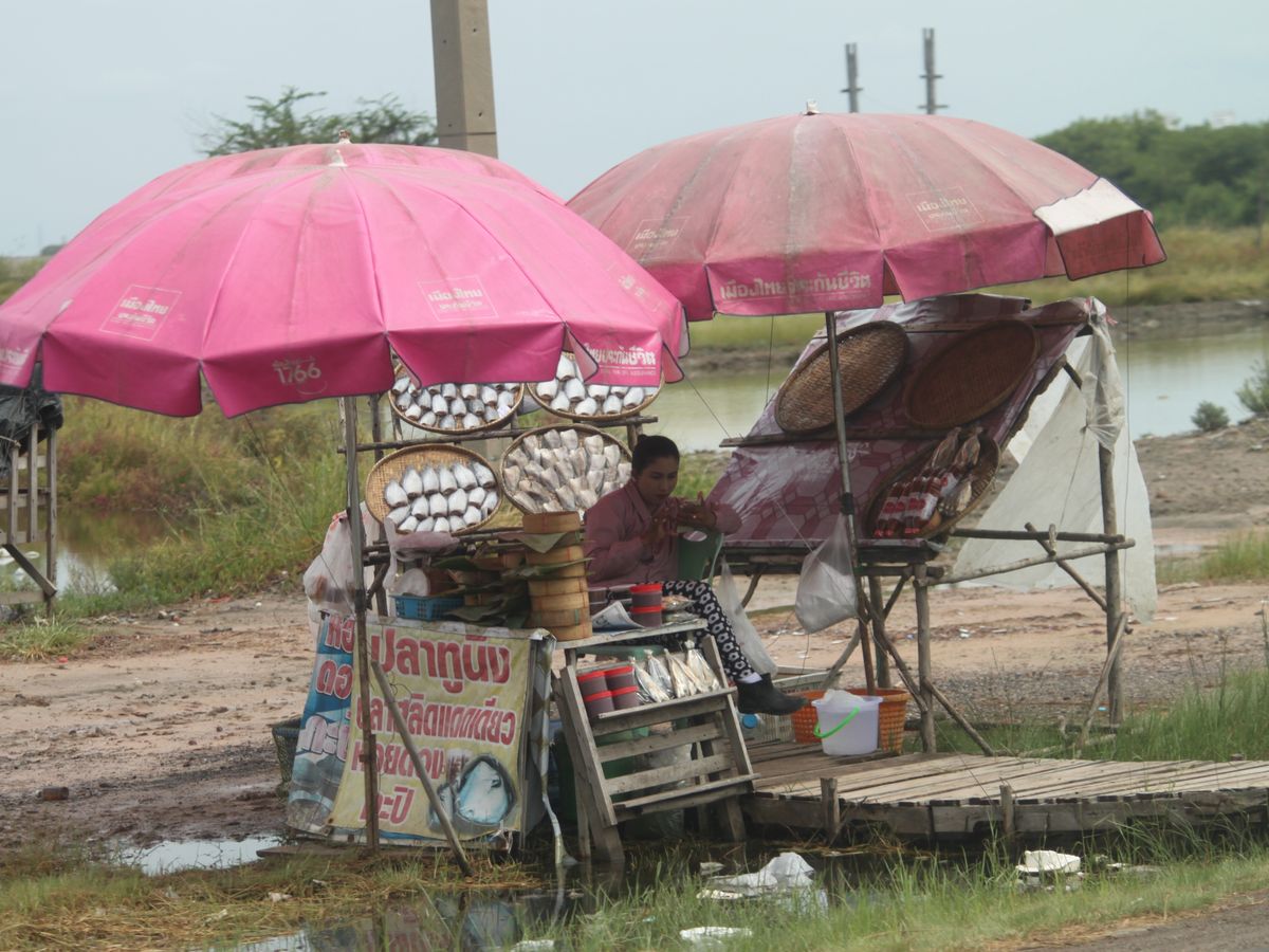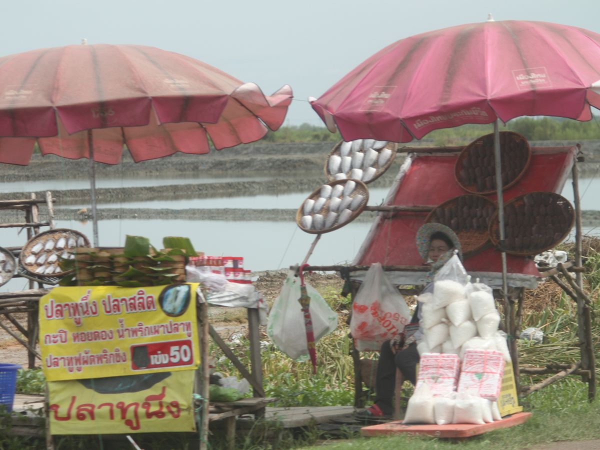 水上マーケットのあるダムヌンサドゥアックとアユタヤ遺跡は全く違う方向にあるため、他の方たちも書かれているように移動距離はかなりあります。タイ初めての私にとっては車窓からの景色もそれなりに楽しめました。ダムヌンサドゥアックに向かう途中、広やかな塩田が続き塩を売る人の露店があちこちに見られました。(写真)水上マーケットは市場というよりはお土産やさん巡りという感じなのでロマンを求めて行くとガッカリかもしれません。でもそこに行くまでのボートでの30分の移動はけっこうワクワクし楽しめます。アユタヤ遺跡は、まあこんなものか。象乗りする場所は「ザ・観光地」といった雰囲気です。とはいえ一度は訪れるべき二大名所を1日で効率よく低料金で巡れるこのツアーは時間の余裕がない方にお薦めです。