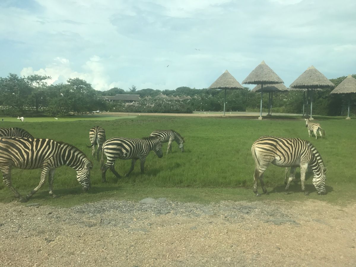 動物園というか、逆だと思うのですが、ジュラシックパークです(笑)。シマウマ、ラクダ、サイ、なんだかよく分からない動物、猫のようにゴロンゴロン転がっているライオンや虎の群れを、じっくり間近で見ることができました。