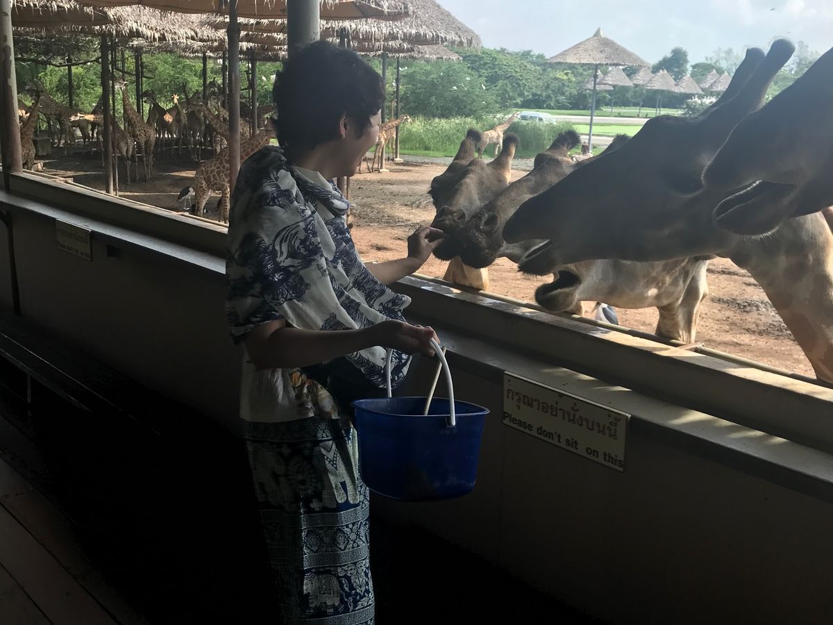 他にも、視界いっぱいのキリンの群れ(キリンは一生分見たと思います)や、虎の赤ちゃんもいますし、芸達者にも程があるオラウータンショーもあり、見所は挙げきれません。特にキリンの餌やり(100Bでした)はオススメです。