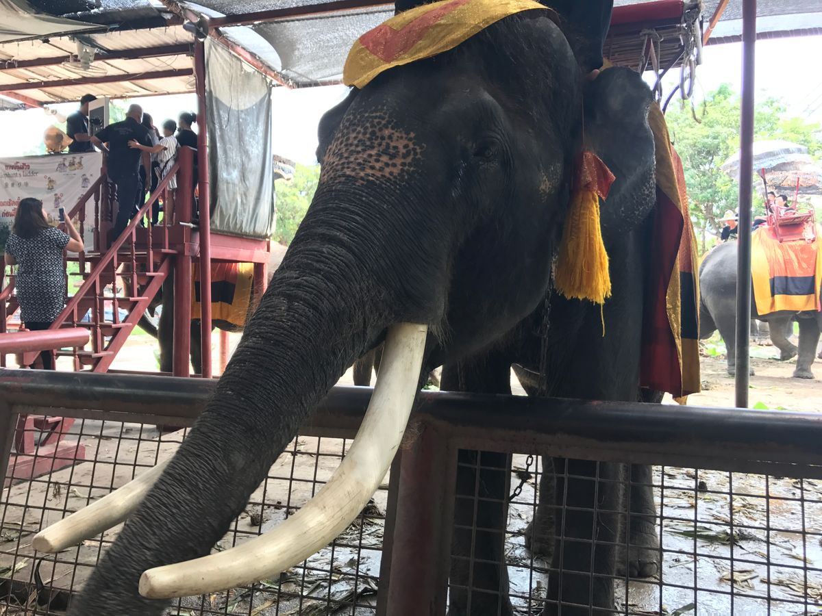 エレファントビレッジの象乗りを体験したのですが、1人だとすごく揺れます!でも迫力があって面白いです。ゾウとは餌をあげたり(確か50B)、小さいゾウさんとお写真(40B)も撮れます。