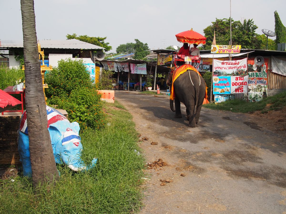 9月末、タイでは雨期の終わりになりますが、アユタヤへのモニターツアーに行ってきました。タイトル通り盛り沢山の内容で、早朝7:00頃にホテルを出発し夕方6:00頃に帰着です。ツアーバスはハイエース12人乗りで、客8名+運転手とガイドさんで10人乗車と結構窮屈です。水上マーケットはバンコクの南西に位置し、アユタヤはバンコクの北にありますので走行距離が相当長く、その分各地の滞在時間が削られます。象乗りはアユタヤ遺跡の寺院跡に作られたエレファントキャンプにあり、小さなふれあい動物園の雰囲気でした(有料ですが、ニシキヘビやトラとの「ふれあい」もできます)。水上マーケットは最初に8人乗りの高速ボートに乗り、そのあと有料ですが船頭手漕ぎ4人乗りボートに乗り換えて水上マーケッを見学します。水上マーケット価格は非常に高いのでガイドさんから1/5価格ぐらいに交渉できると聞いていました。私は食べ物だけを買いましたが、同乗した人は頑張って価格交渉していました。正直、水上マーケットより高速ボートの方がスリルが有って面白かったし、高速ボート乗り場の木彫り職人さんの仕事に見とれてしまいます。その後、バンコク市内のホテルにて昼食を食べ(いろいろ選べ、結構おいしかった)、アユタヤに向かいます。途中トイレ休憩もかねてココナツファームに寄り、アユタヤに到着です。アユタヤ遺跡は2つの河川に囲まれた広大な島状の平地で、中世にビルマ軍との戦争で破壊されたのち修復が出来ていない寺院跡がいたるところに有ります。ツアーでは主要な遺跡の中の3つの寺院と、修復が進み僧侶が生活する美しい寺院に案内していただきました。ガイドのポーさん(女性ですが、本名が長く覚えられないのでポーさんと呼んでいました)は日本語がうまく、またタイ仏教の研究をされていたとのことで、アユタヤ遺跡の寺院についてとても詳しく教えてくれました。最後に訪れた白い涅槃仏寺院ではお参り作法も伝授され、その通りにお参りしましたよ。9月末のタイは 昼間は晴れ又は薄曇りで蒸し暑く、夕方から激しい雷雨になる事が多いようです。ツアーの服装はTシャツ・短パン・サンダルでOKですが、アユタヤでは相当歩くのでスニーカーがお勧めです。ツアーバスに荷物や購入したお土産などを放置できるので、行動の荷物にはなりません。雨傘はツアーバスに用意されていました。バンコク市内は日によって相当な渋滞が発生するようで、帰りの到着時間はその時の交通事情により1時間ぐらい前後するらしいす。ちなみに我々は渋滞には会わずにラッキーでした。