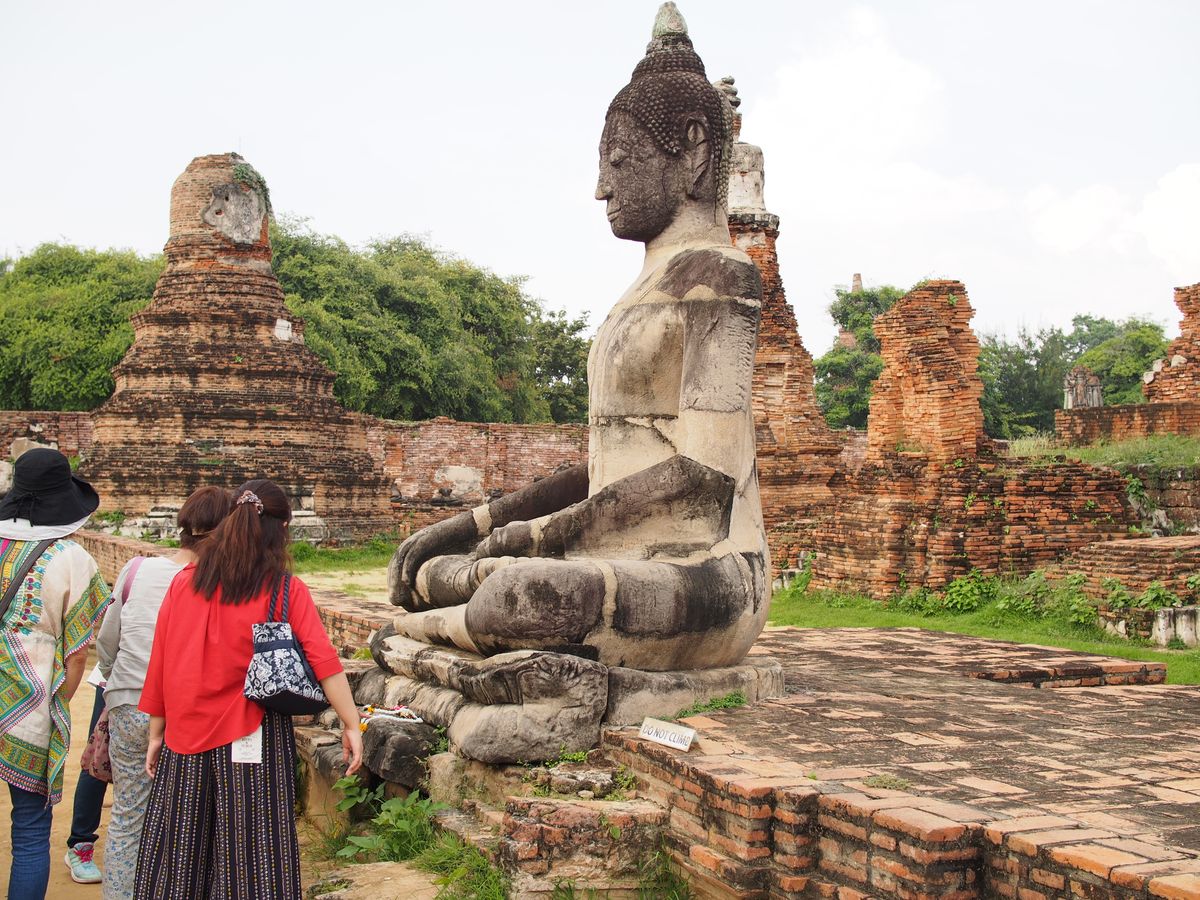 水上ボートでは現地の人々の暮らしぶりに触れ、アユタヤ遺跡では古代タイ文化の歴史に想いを巡らせ、初体験のゾウ乗りは楽しさで笑いが止まりませんでした。移動のバス内では、日本語堪能な女性ガイドさんがユーモアたっぷりにタイの文化や歴史について語ってくださいました。