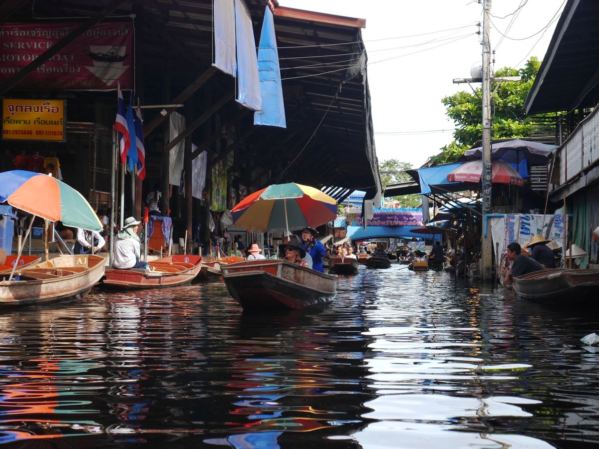 水上マーケットのボートが思ったよりスピードがあり、予想外の楽しさでした。