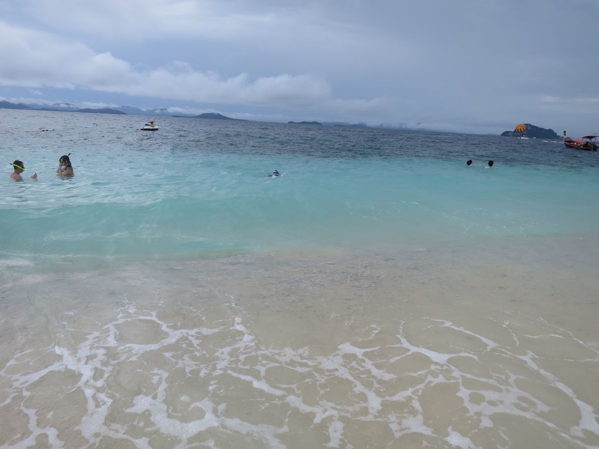 雨でマヤベイビーチも濁り、カイ島でも豪雨と寒さで一時間震えながら過ごすという、期待していただけに本当に残念です。