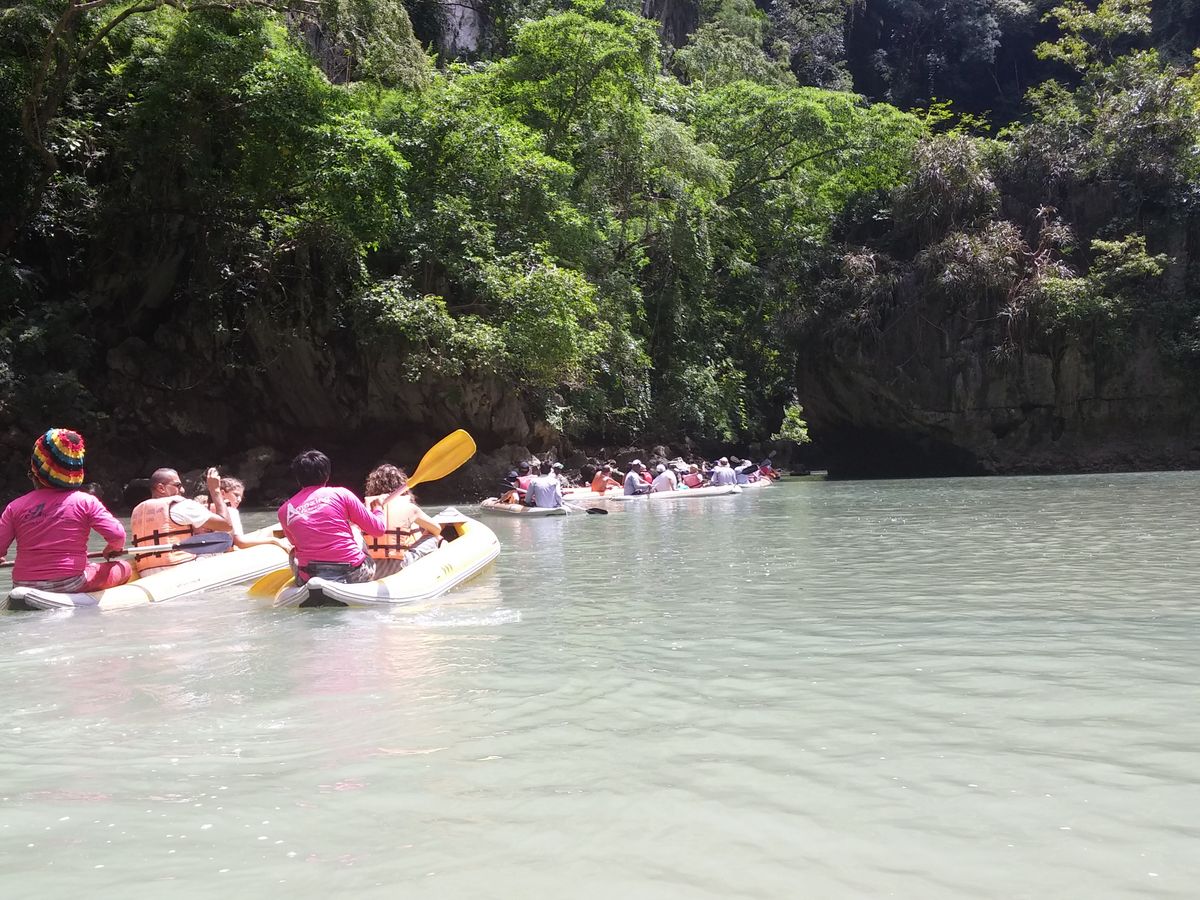 シーカヌーでは,船から2人ずつカヌーに乗り込み,一艘ごとにガイドさんが付いて,要所で記念写真を撮ってくれたり,片言の英語で説明してくれたり,一生懸命サービスしてくれました.最後にチップを渡したかったのですが,現金を忘れて,反省.
