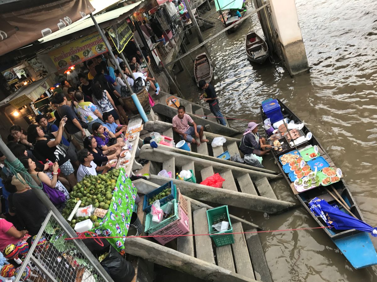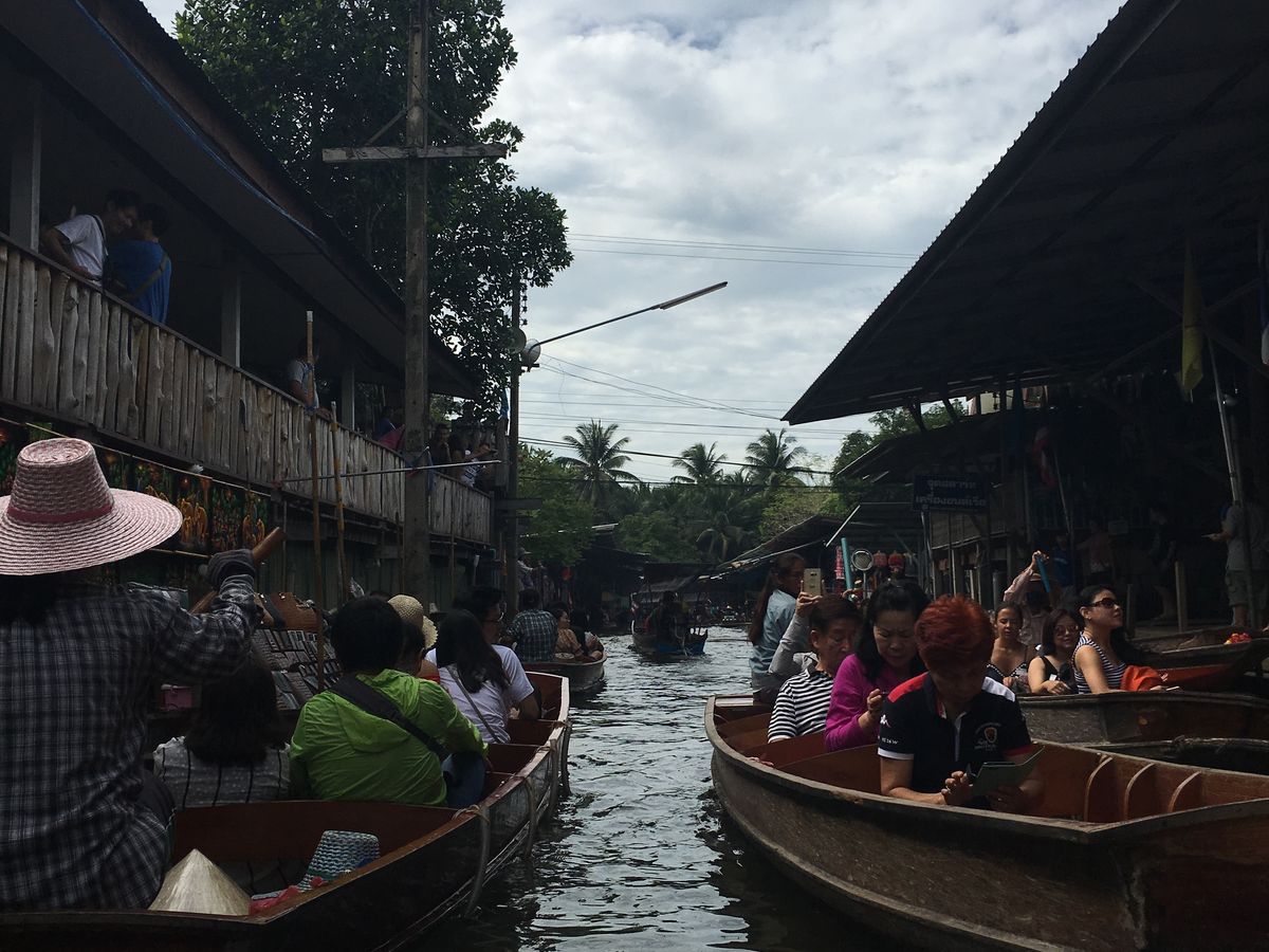 水上マーケットでは、追加料金は必要ですが、手漕ぎボートにも乗船することができ、雰囲気を味わうことができました。