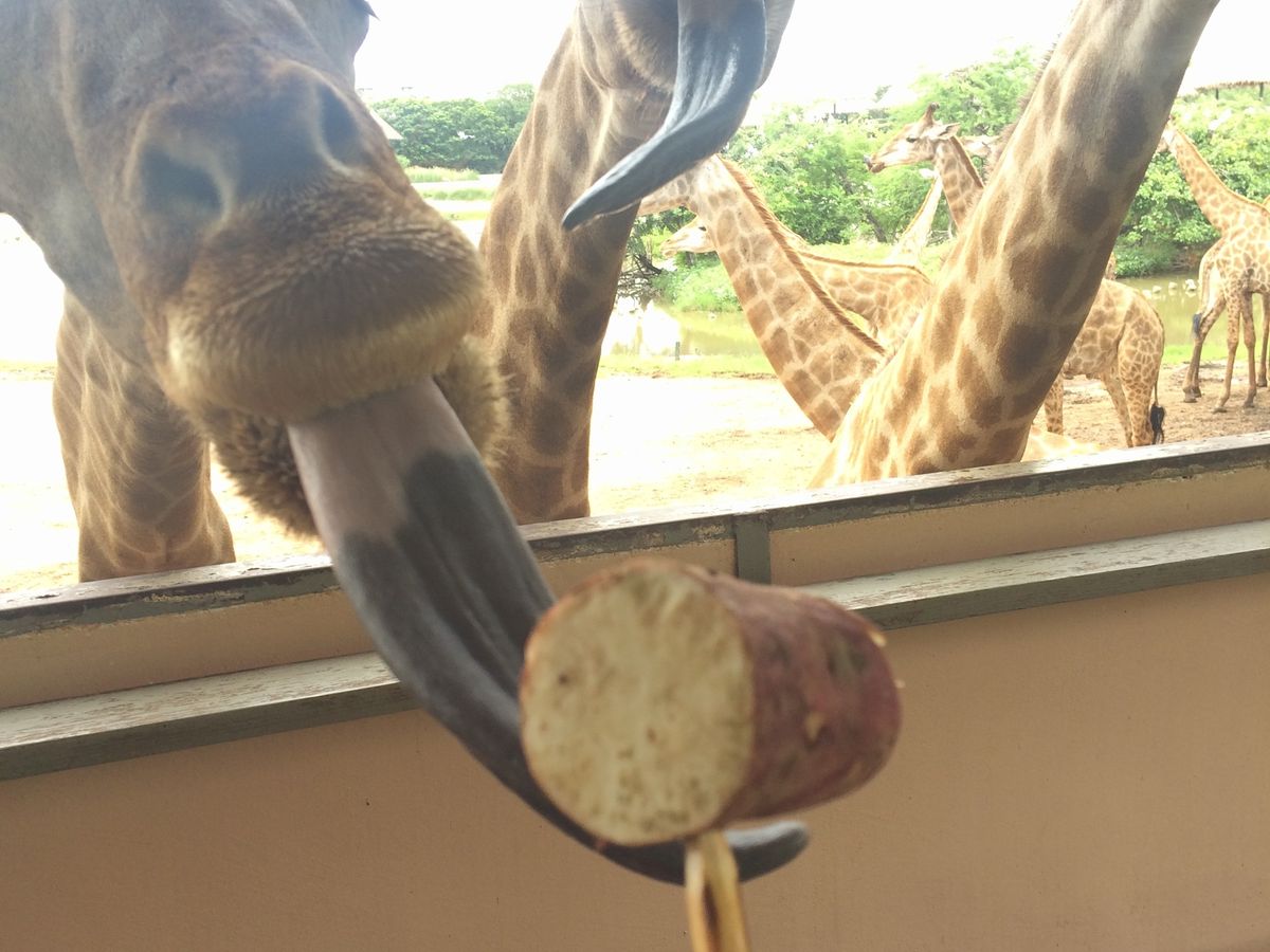 当日は私達家族だけだったので、時間の融通を利かせていただいたり、自由に回ることができました。象のショーは見なかったのですが、その間にキリンの餌やりにいったらガラガラで、300頭?のキリンを満喫できました! あとから象も見たいとショーの会場に行ったら、出番を終えた象が寛いでいて、これまた貸切で、写真を撮ったり象乗りしたりできて大満足でした。ある程度自分達のペースでゆっくりまわれたのが良かったと思います。