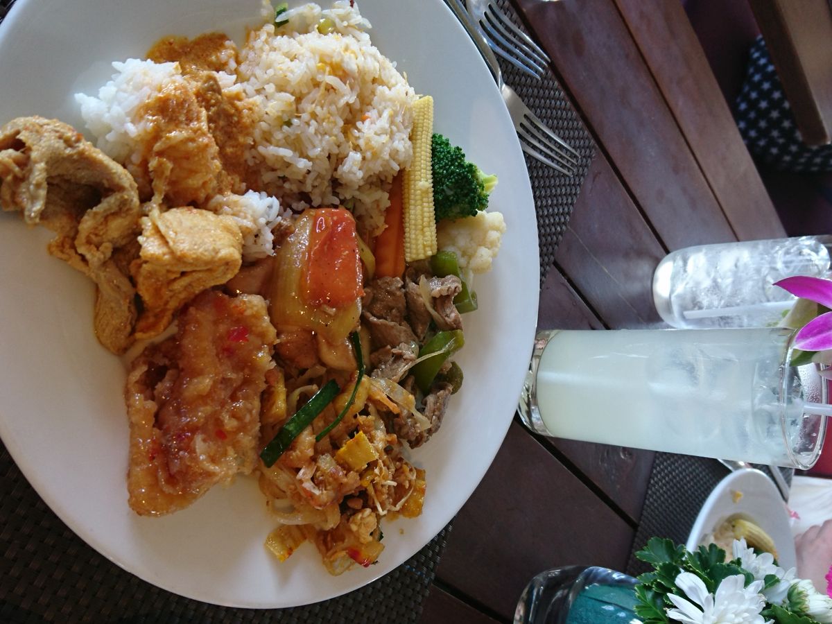 ビュッフェもタイの代表的な料理のカオマンガイ、パッタイ、グリーンカレーなど品数が多く、いっぱい食べられたのでよかった。(ドリンク代は別料金だったのは残念)