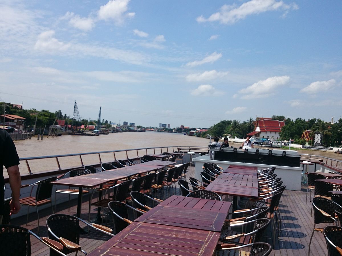 船は『グランド・パール』号という、夜はチャオプラヤー川ディナークルーズに使用されている船で、アユタヤからバンコクまでの1/3程度をクルーズしました。