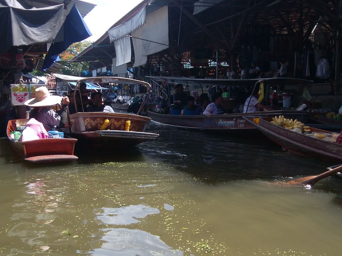 一人参加応援ツアーで参加させていただきました。水上マーケットでの乗船は自由参加でしたがせっかくなのでツアー参加者全員で乗船しました。ガイドさんおすすめのココナッツアイスも食べることができ満足でした。ボート下船後に写真を150バーツで販売していました。こちらが何も言わずとも100バーツまで下がりました(笑)バンコクあるあるだなと楽しませていただきました。