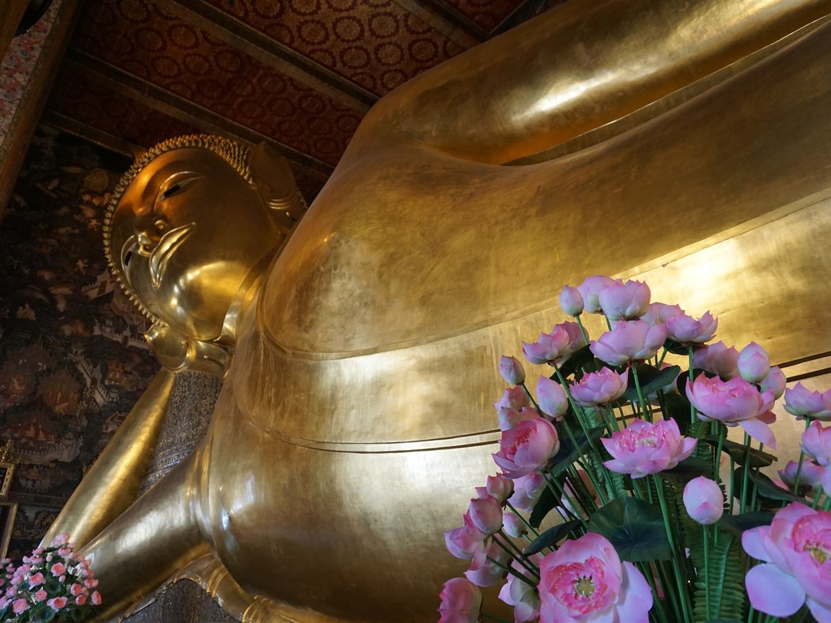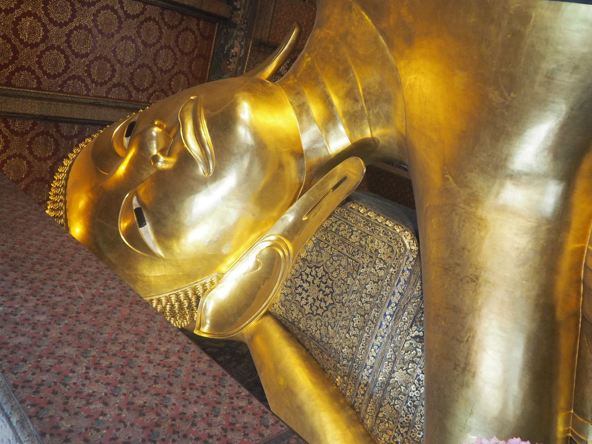 有名な涅槃仏の寺院です。仏様の足の裏には螺鈿細工で宇宙観が表されていますが、こちらも修復中なので半分程度しか見られません…